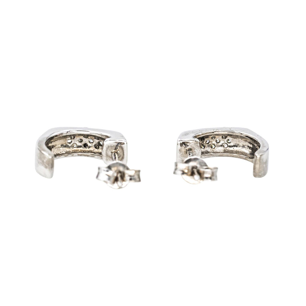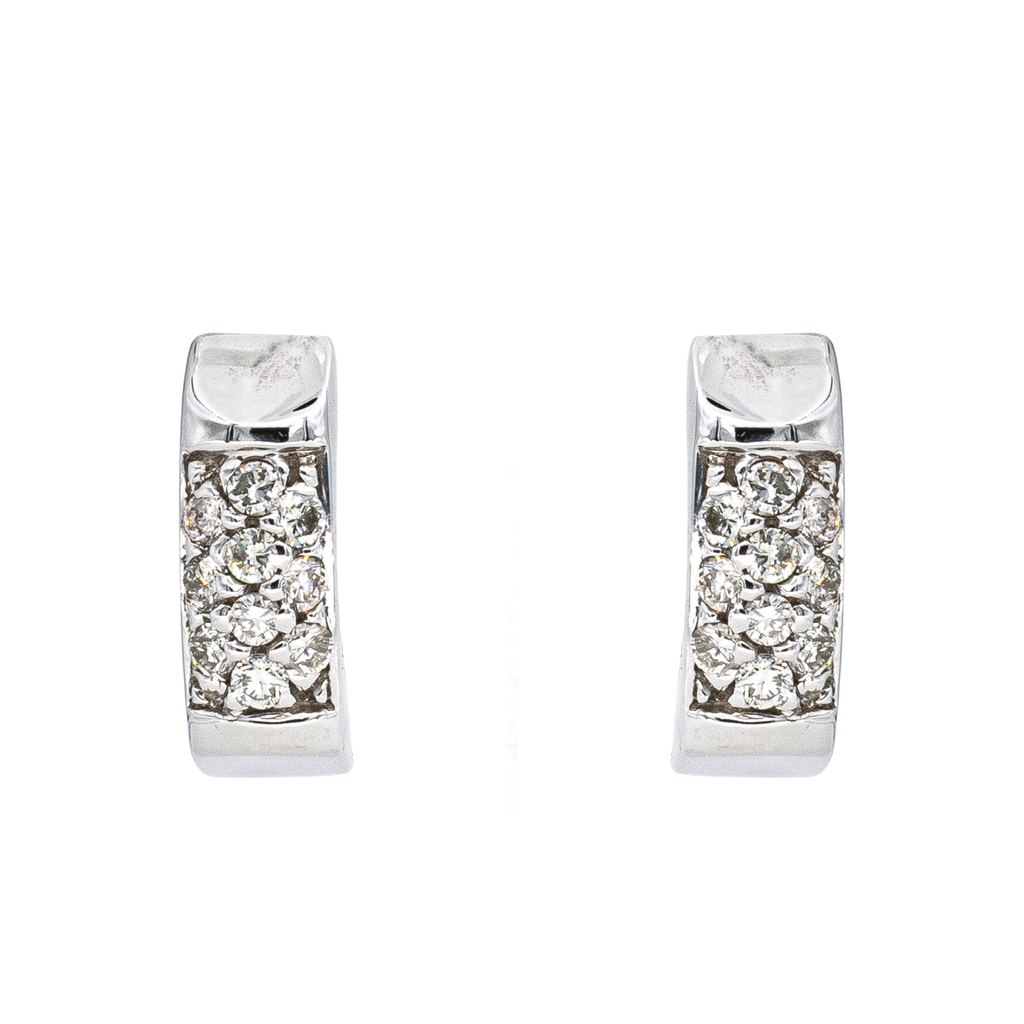 Demi-créoles en or blanc 750 millièmes (18 carats) testé, serties de 20 diamants, taille brillant, environ H-VS, poids total des diamants : environ 0,20 ct, (chaque diamant d'un poids d'environ 0,20 ct), diamètre : 1,10 cm, largeur : 0,36 cm, poids total : 2,47 g, excellent état