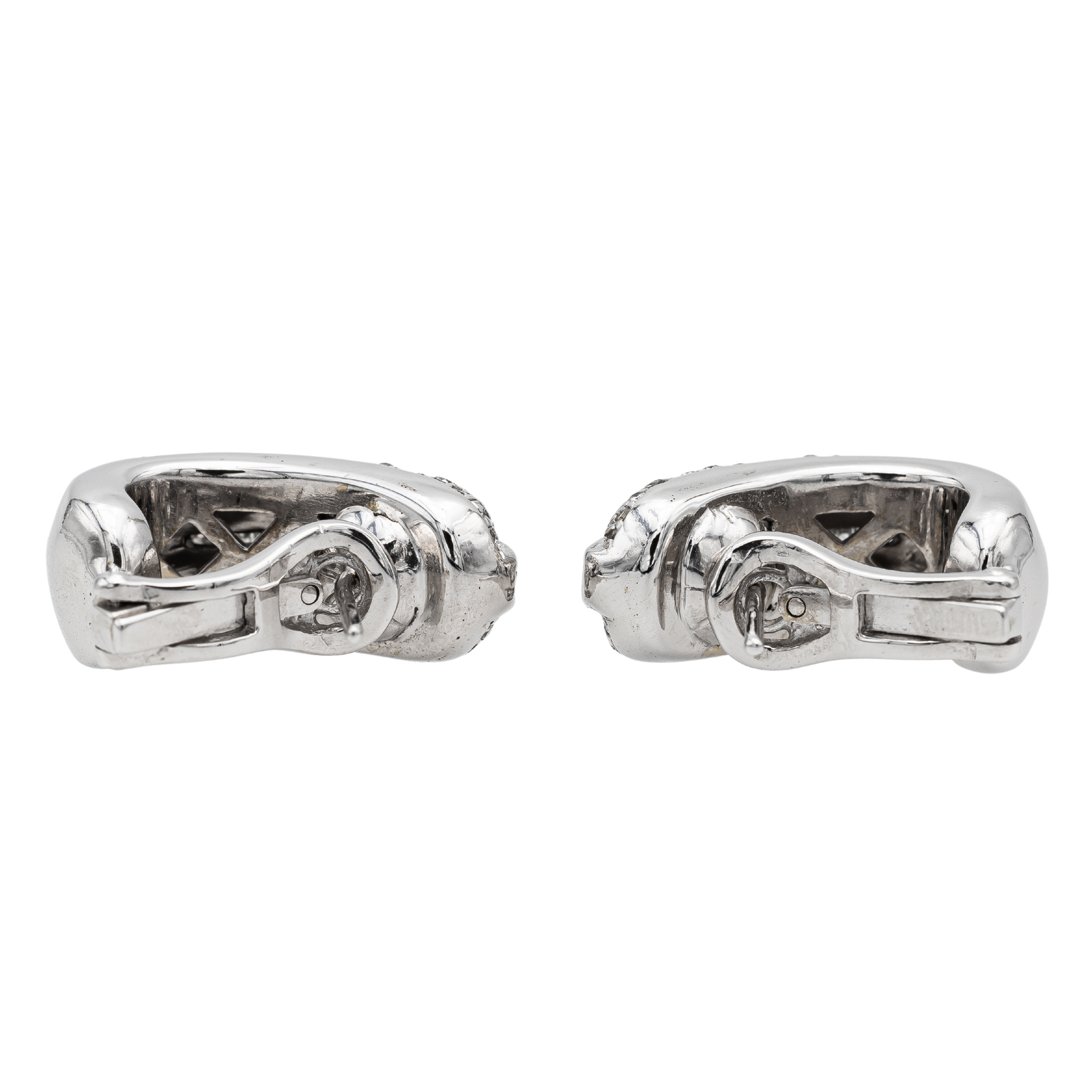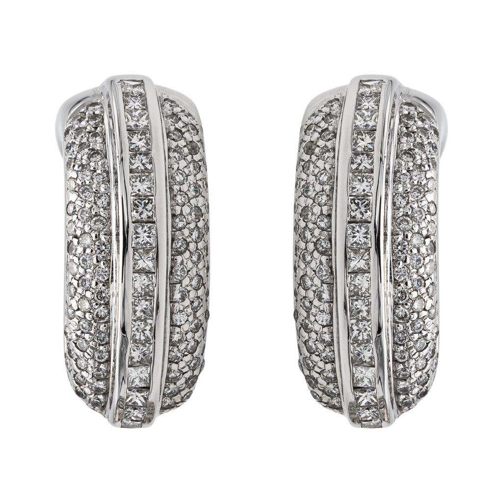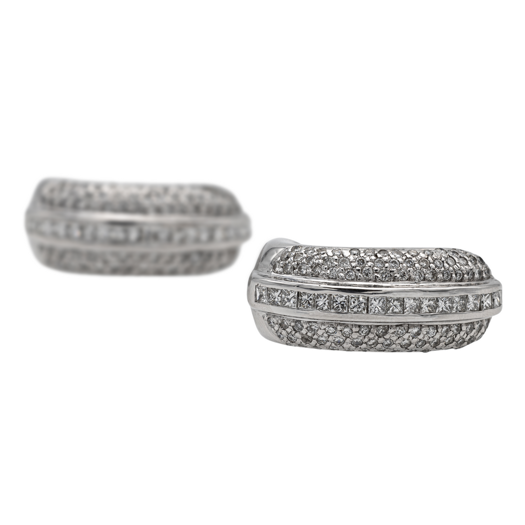 Paire de boucles d’oreilles en or blanc 750 millièmes (18 carats), serties de 188 diamants taille brillant, estimés H/SI, chacun d'un poids d'environ 0,005 ct, et de 34 diamants taille princesse, estimés H/SI, chacun d'un poids d'environ 0,01 ct, poids total des diamants: environ 1,28 cts, dimensions: 2,36 cm x 0,97 cm, poids total: 21,88 g, poinçon hibou, excellent état