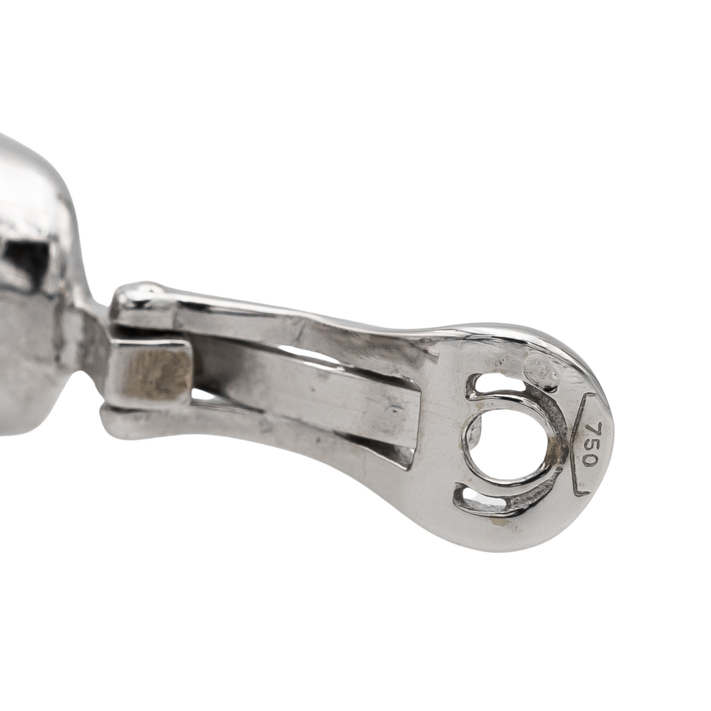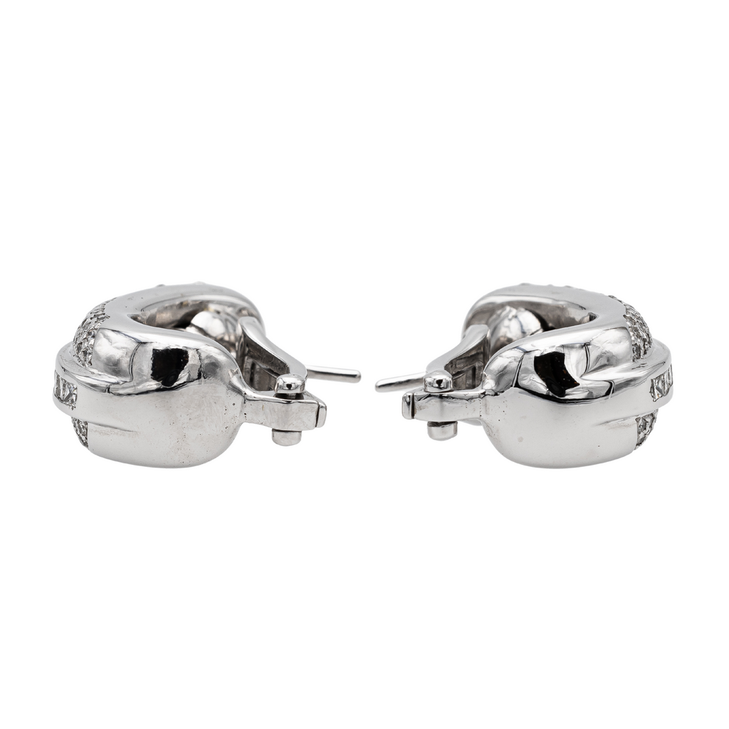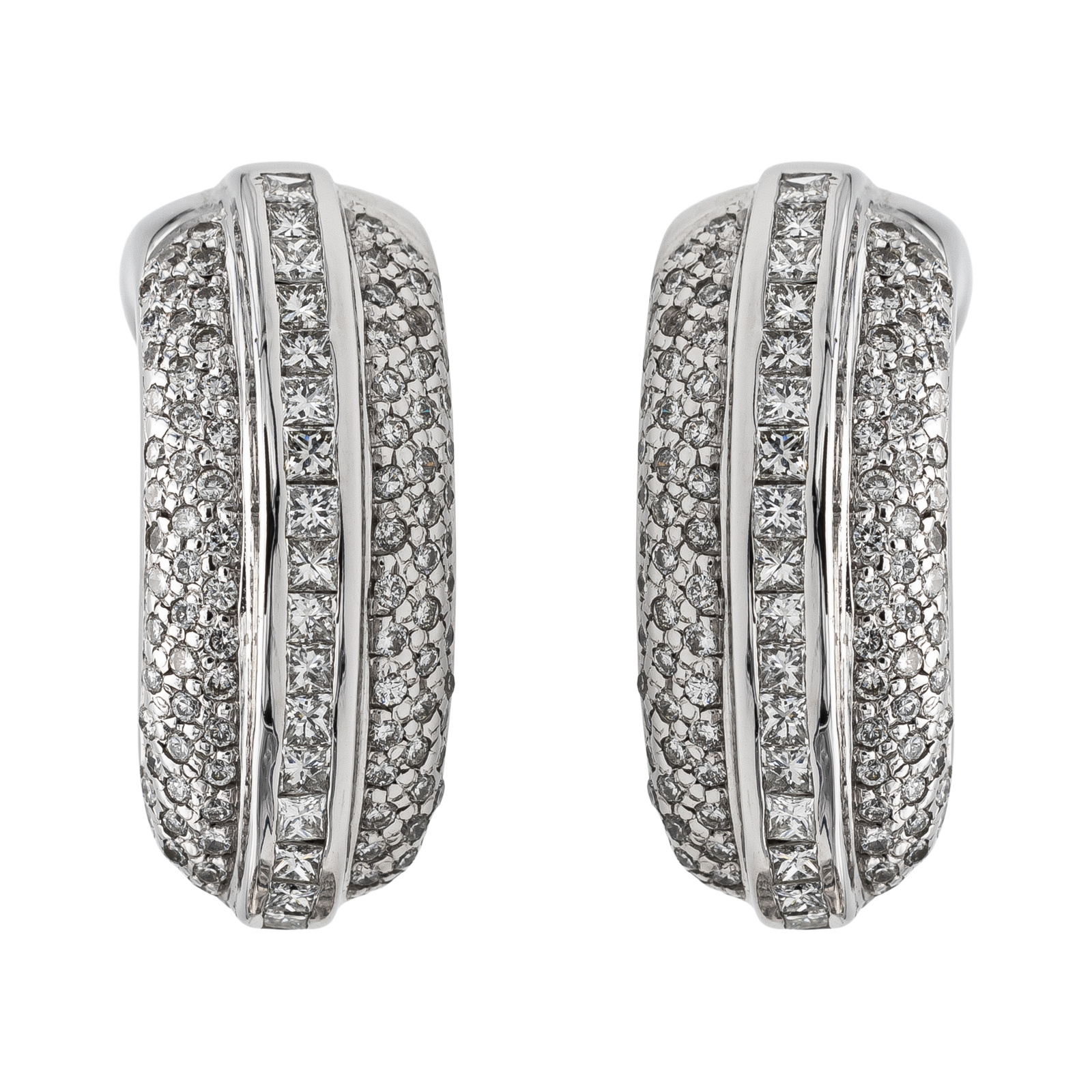 Paire de boucles d’oreilles en or blanc 750 millièmes (18 carats), serties de 188 diamants taille brillant, estimés H/SI, chacun d'un poids d'environ 0,005 ct, et de 34 diamants taille princesse, estimés H/SI, chacun d'un poids d'environ 0,01 ct, poids total des diamants: environ 1,28 cts, dimensions: 2,36 cm x 0,97 cm, poids total: 21,88 g, poinçon hibou, excellent état