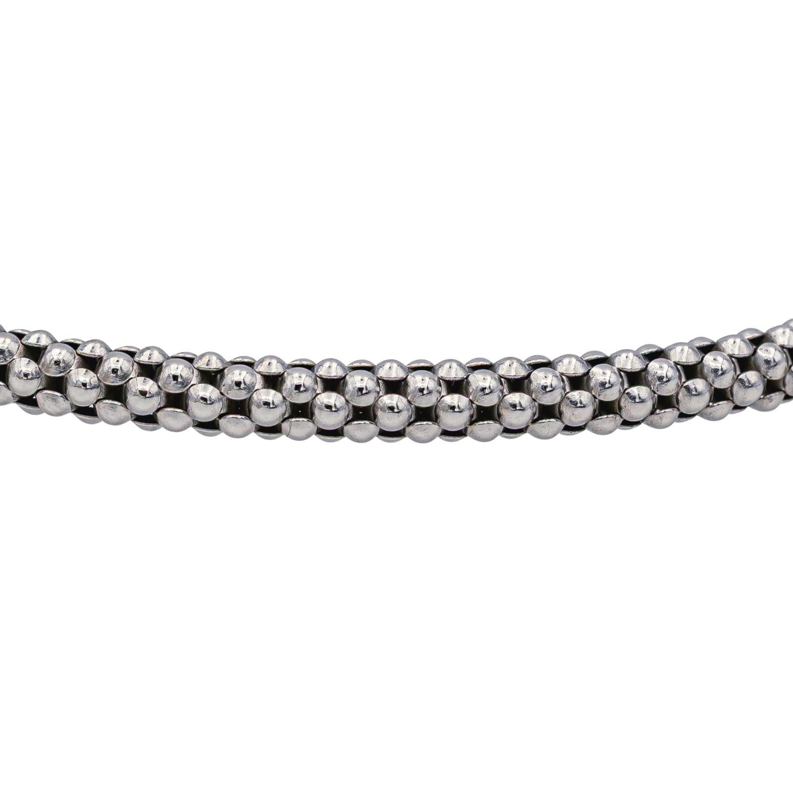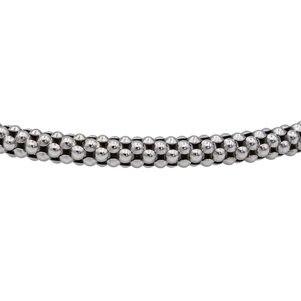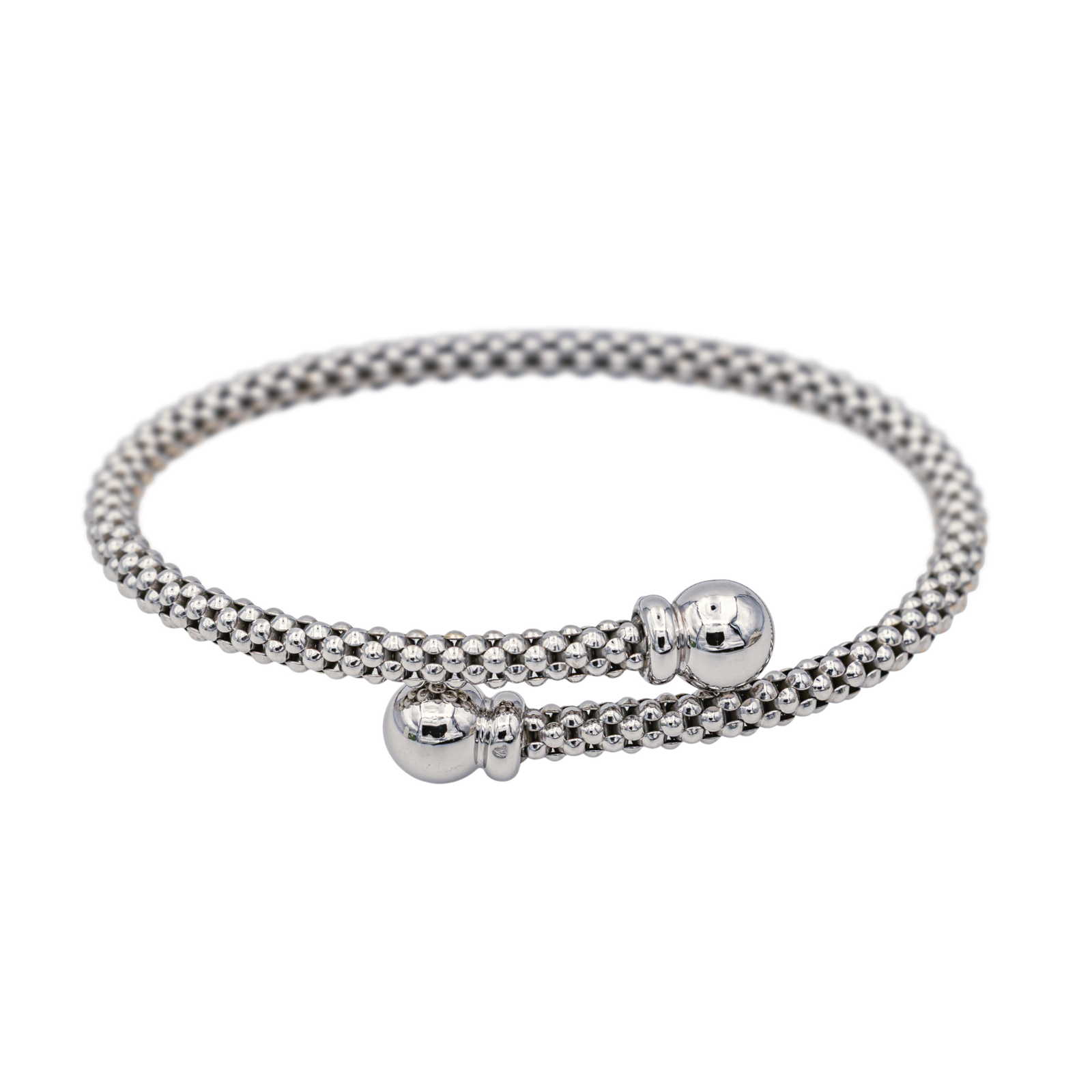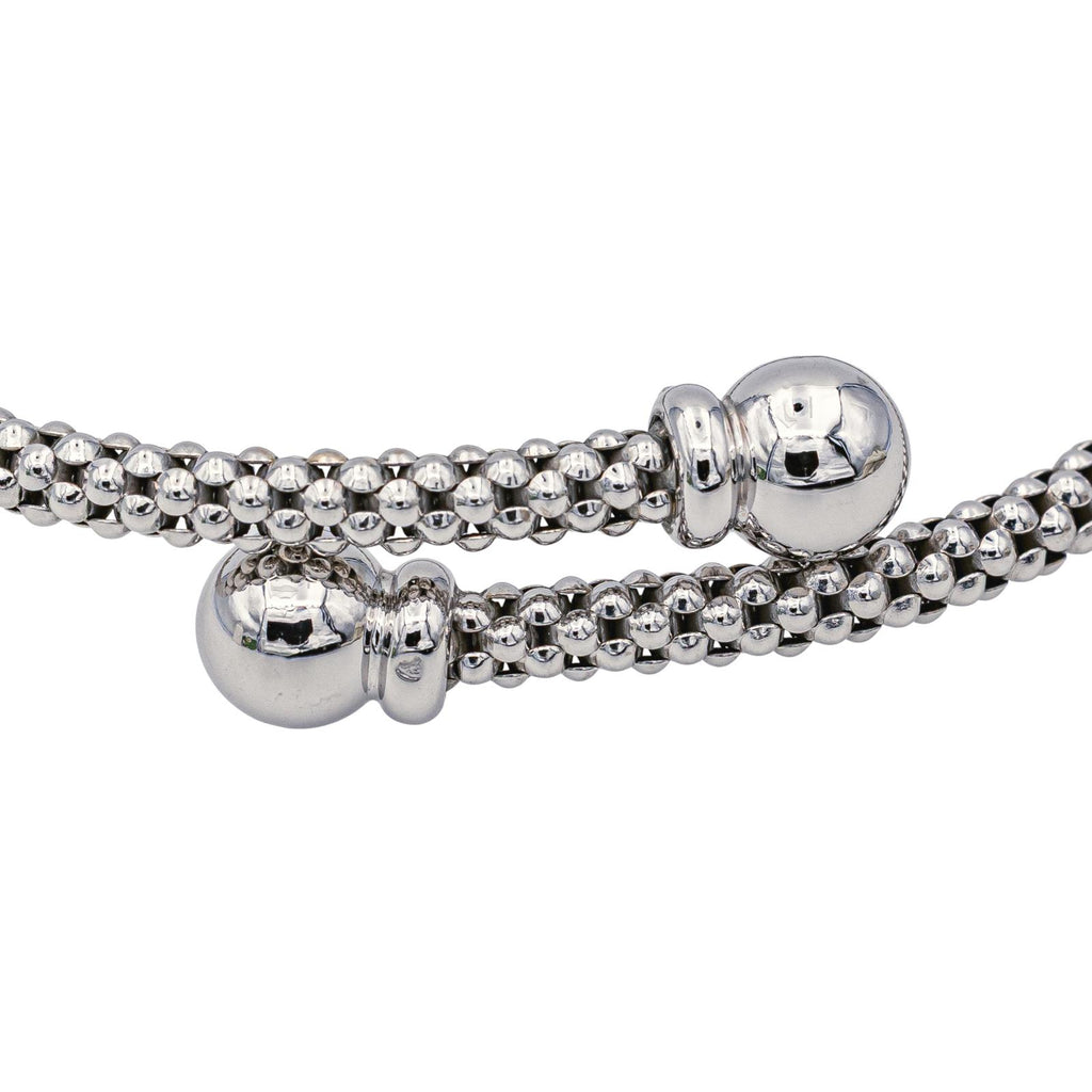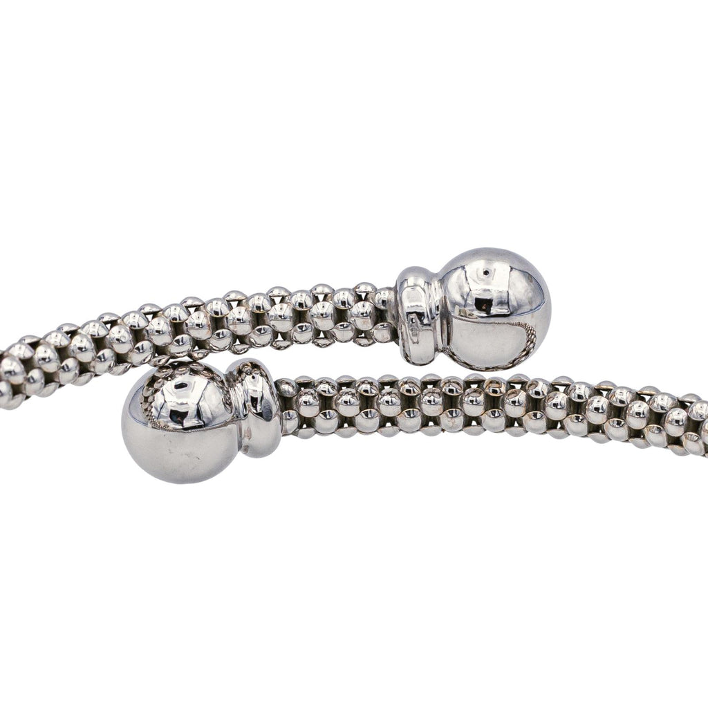 Bracelet jonc en or blanc 750 millièmes (18 carats), souple, diamètre intérieur : 6,10 cm, largeur : 1,50 cm, tour de poignet : 17,50 cm, poids total : 12,41 g, poinçon hibou, excellent état