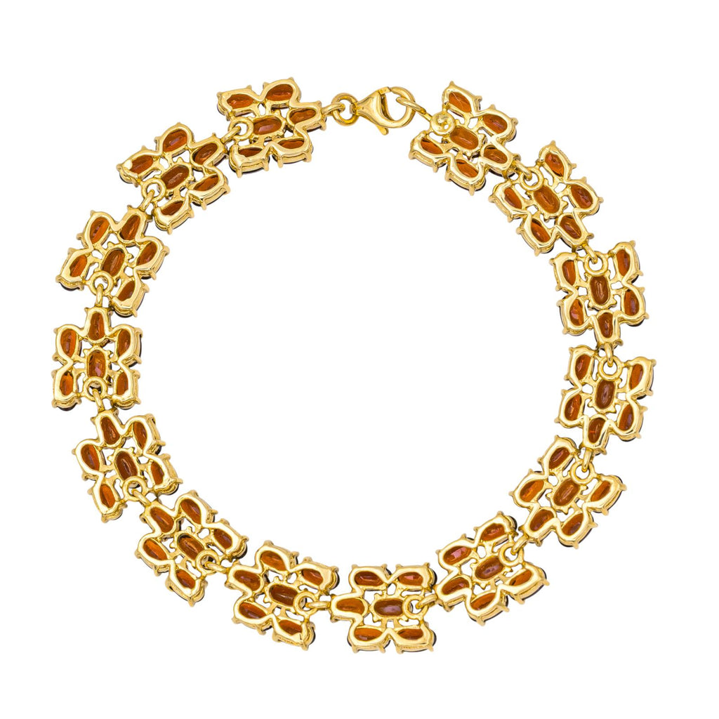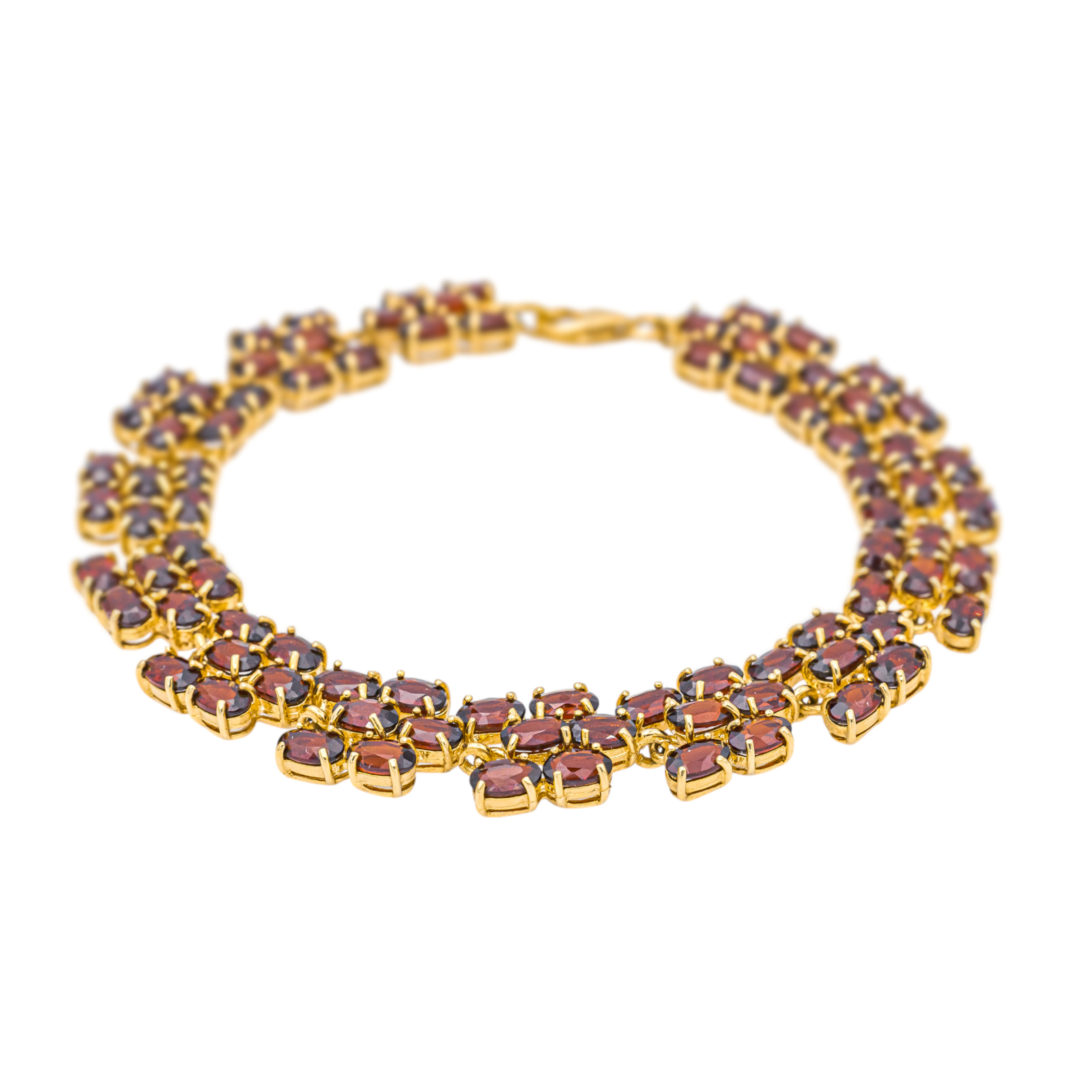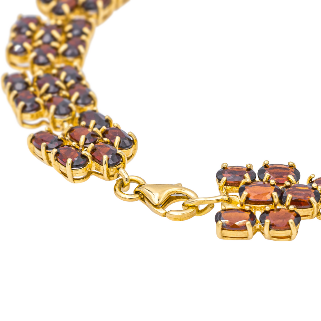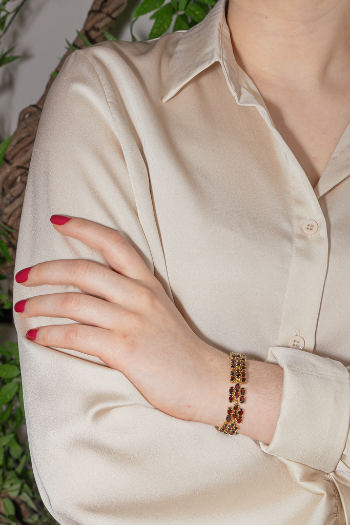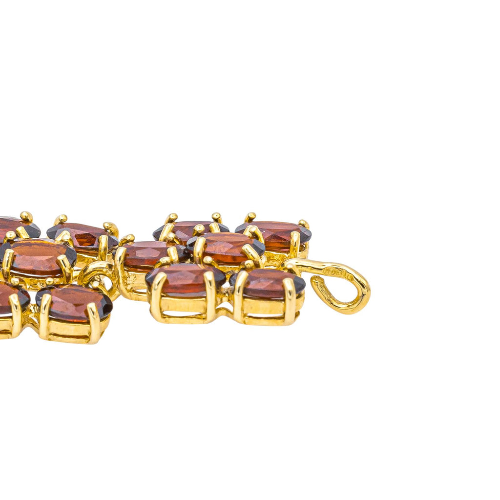 750 thousandths (18 carat) yellow gold bracelet, composed of 84 oval-cut garnets of approximately 0.22 ct each, total garnet weight: 18.48 cts, length: 17.5 cm, width: 1.1 cm, total weight : 23.12 g, eagle's head hallmark, excellent condition