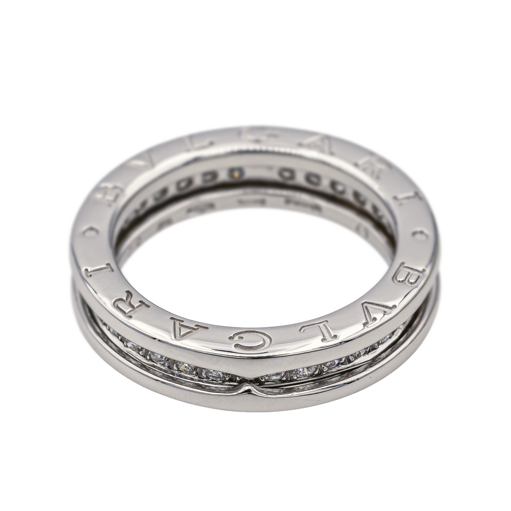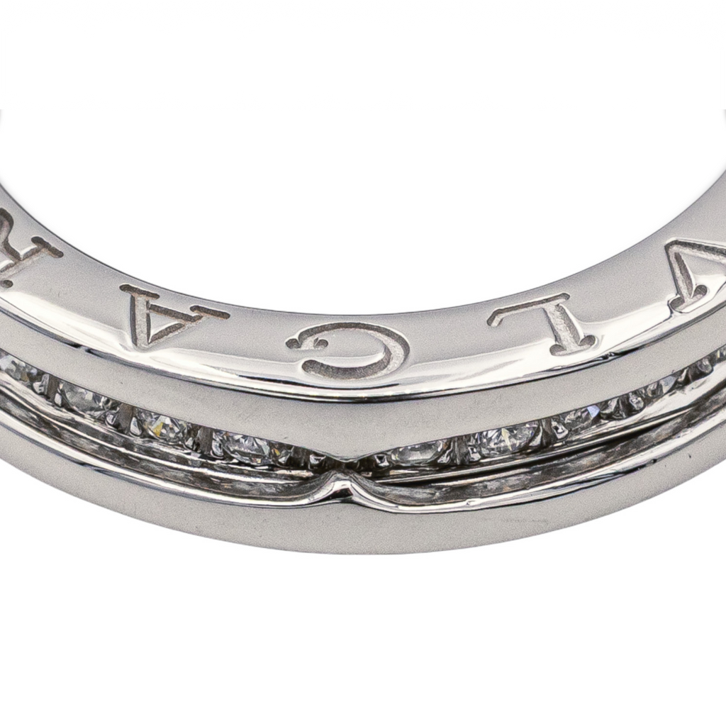 Bague signée de la Maison Bulgari en or blanc 750 millièmes (18 carats), modèle B.zéro1, sertie de 32 diamants, taille brillant, environ G-VS, d'un poids total d'environ 0,32 ct, (chaque diamant d'un poids d'environ 0,01 ct), largeur sur le dessus : 0,46 cm, tour de doigt : 52, poids total : 6,75 g, poinçon saint Bernard, excellent état