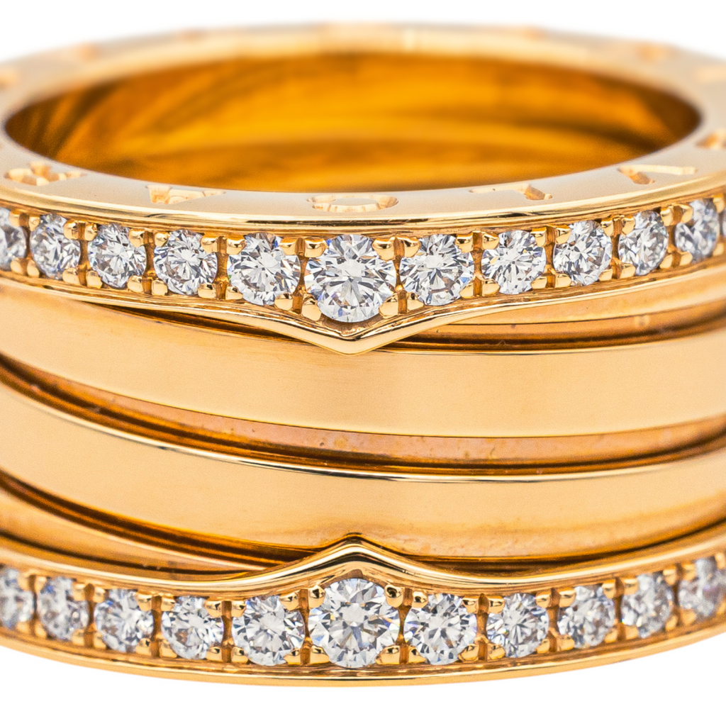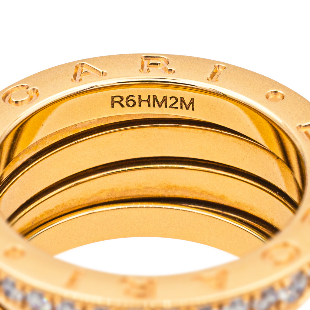 Bague signée de la Maison Bulgari, collection B.zéro1 4 rangs, en or rose 750 millièmes (18 carats), sertie de deux rangs de diamants, taille brillant environ G/VS, pour un total d'environ 0,76 ct, Taille 52, largeur : 1,14 cm, poids total: 11,58 g, numérotée : R6HM2M, full set, excellent état, jamais portée