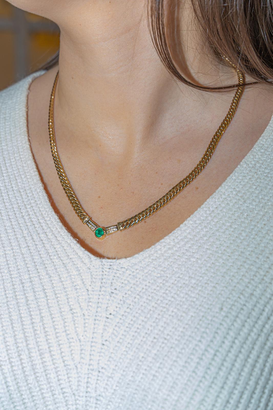 Collier Maille anglaise Or jaune Emeraude, Diamant