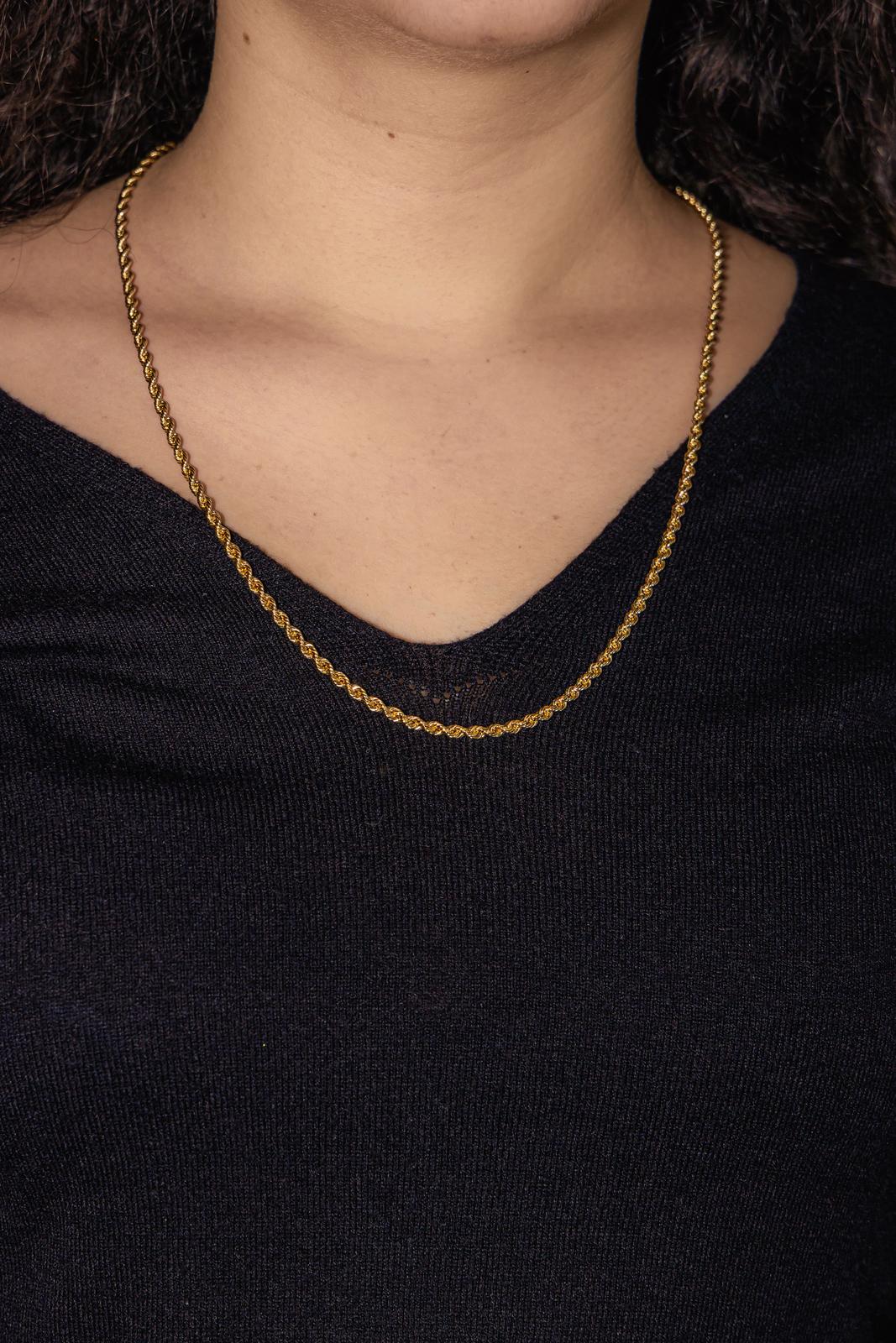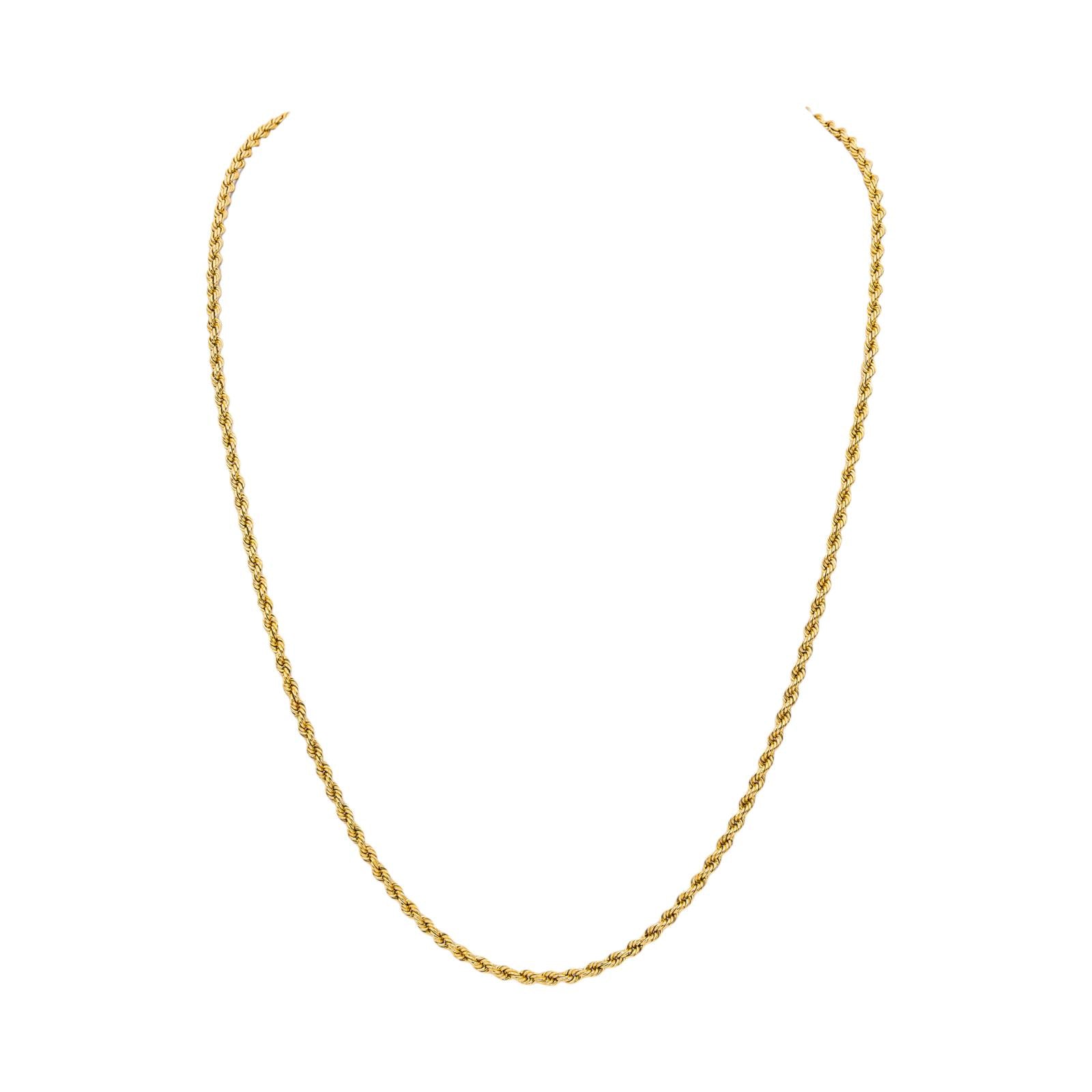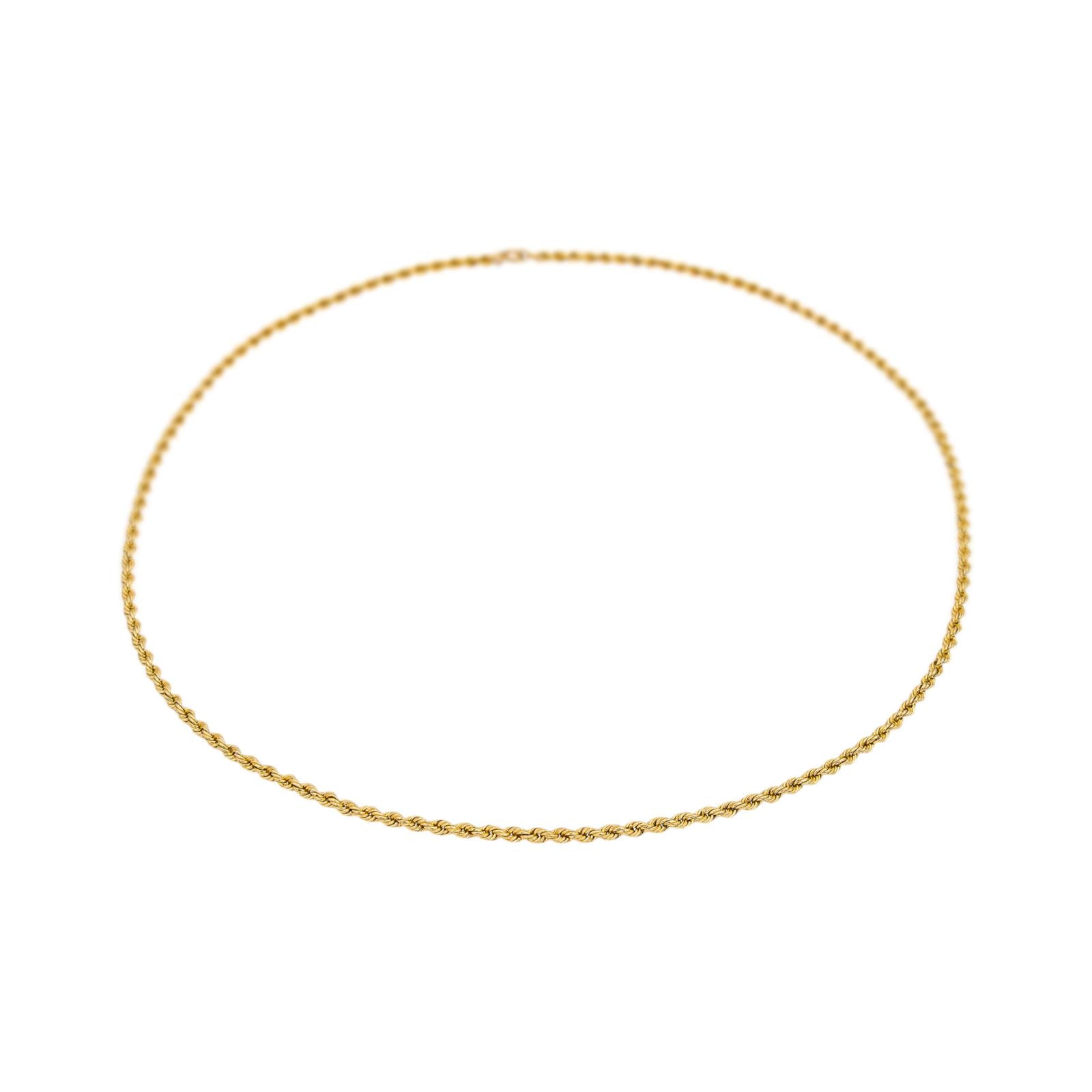 Chaîne en or jaune 750 millièmes (18 carats), maille torsadée, longueur : 61,00 cm, largeur : 0,82 cm, poids total : 7,09 g, poinçon tête d’aigle, excellent état
