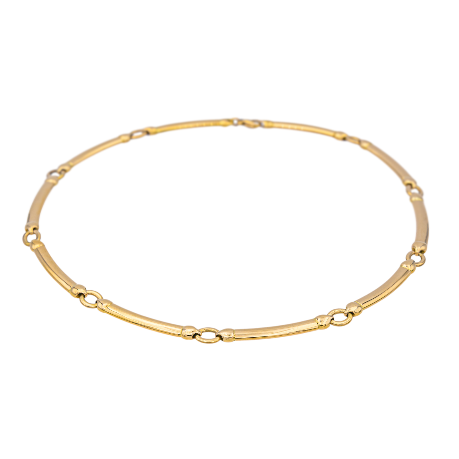 Collier en or jaune 750 millièmes (18 carats), Articulé en forme de barrettes, Poids total: 28.40 g, Taille 42 cm, poinçonné, excellent état