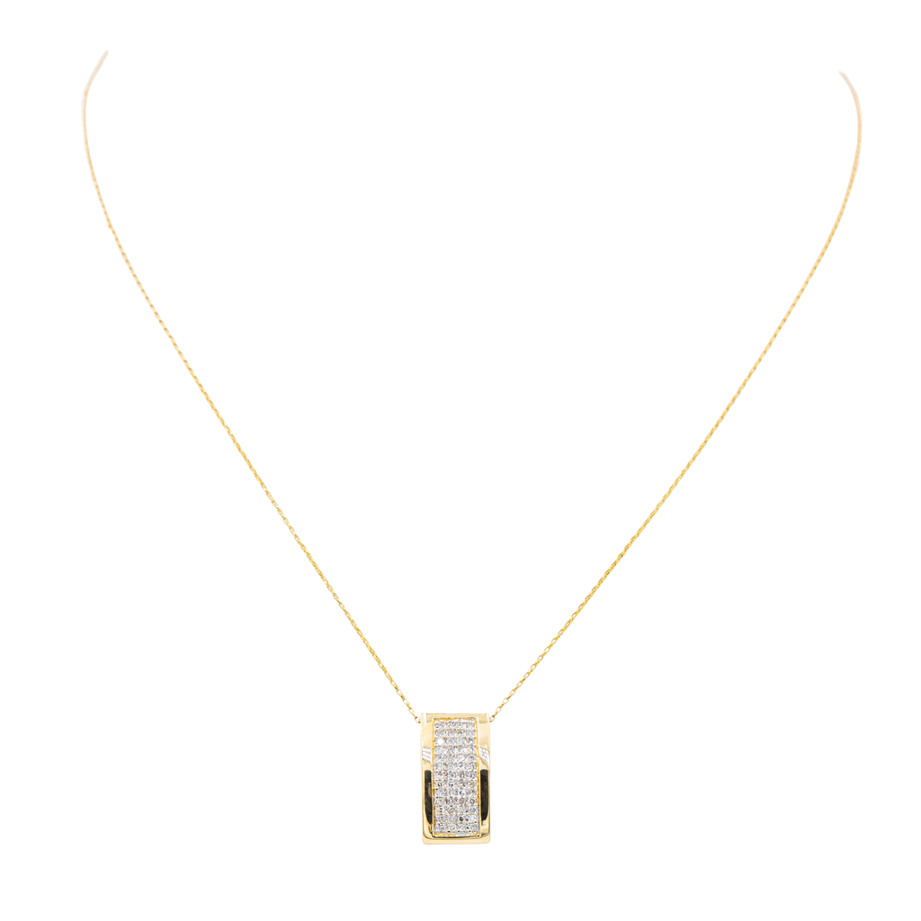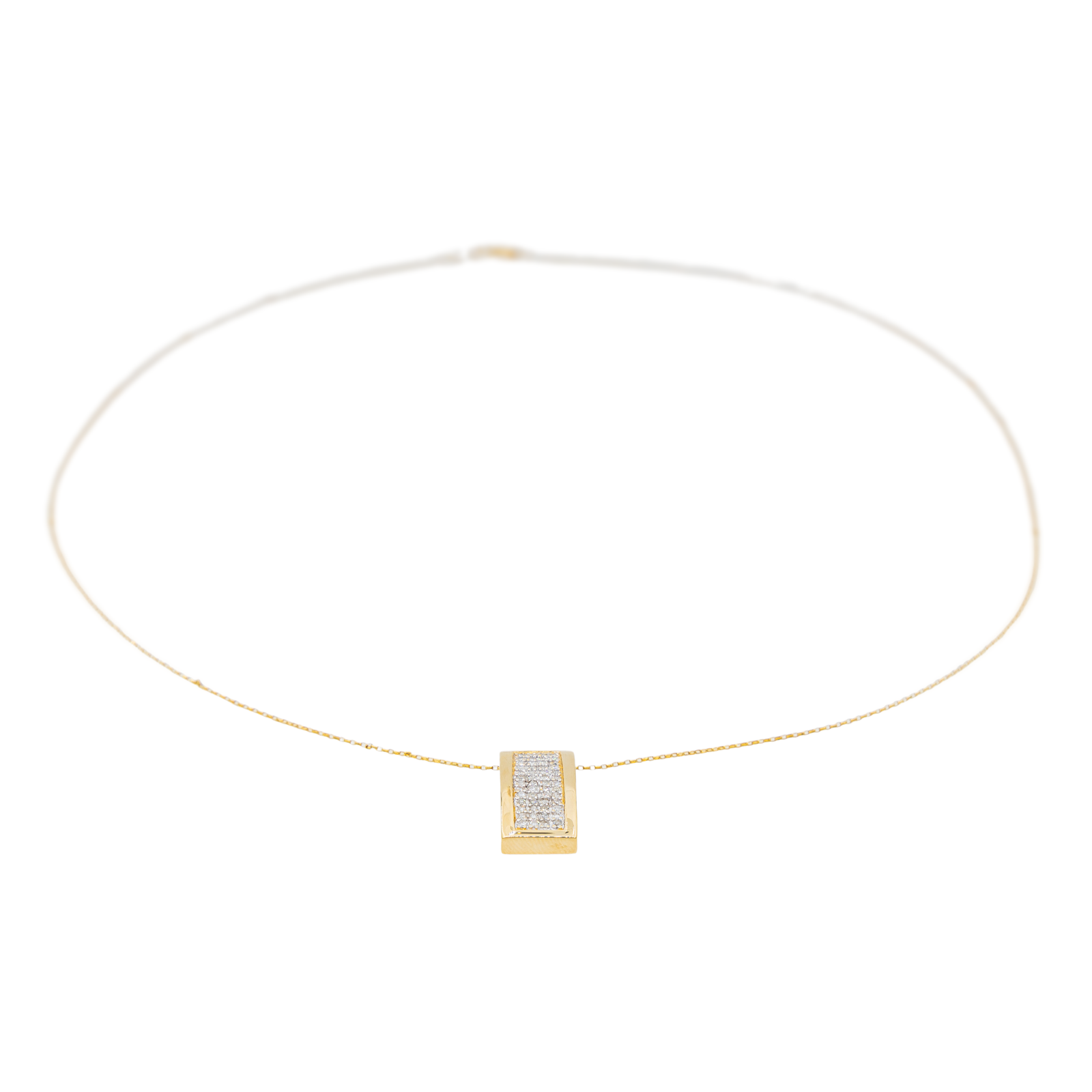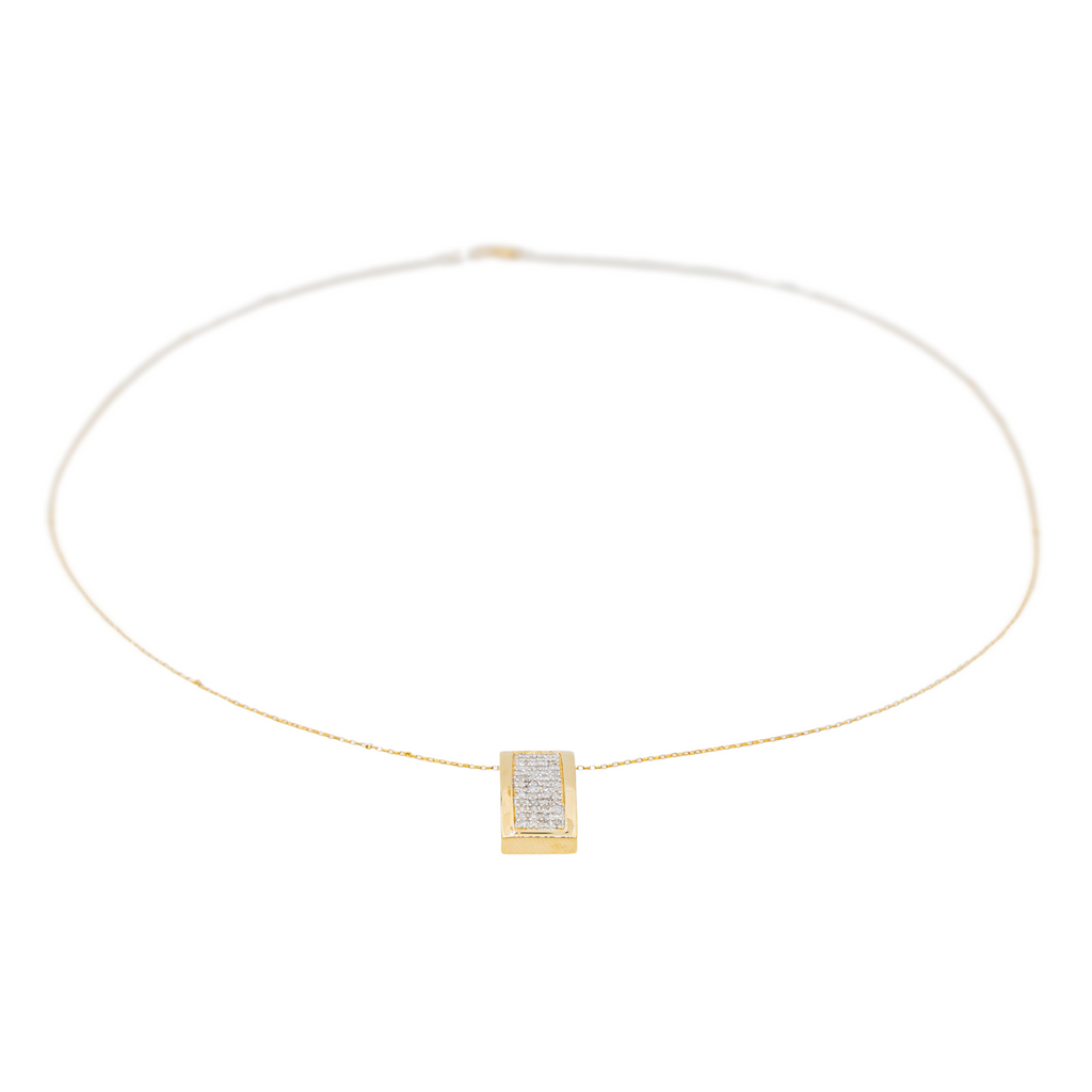 Collier en or jaune 750 millièmes (18 carats) testé, motif rectangulaire sertis de 52 diamants taille huit/huit, environ H-SI, maille forçat, poids total diamants: 0,26 ct, (52 diamants de 0,005 ct environ), longueur: 42 cm, longueur du motif: 1,73 cm, largeur: 0,91 cm, poids total: 3,03 g, excellent état