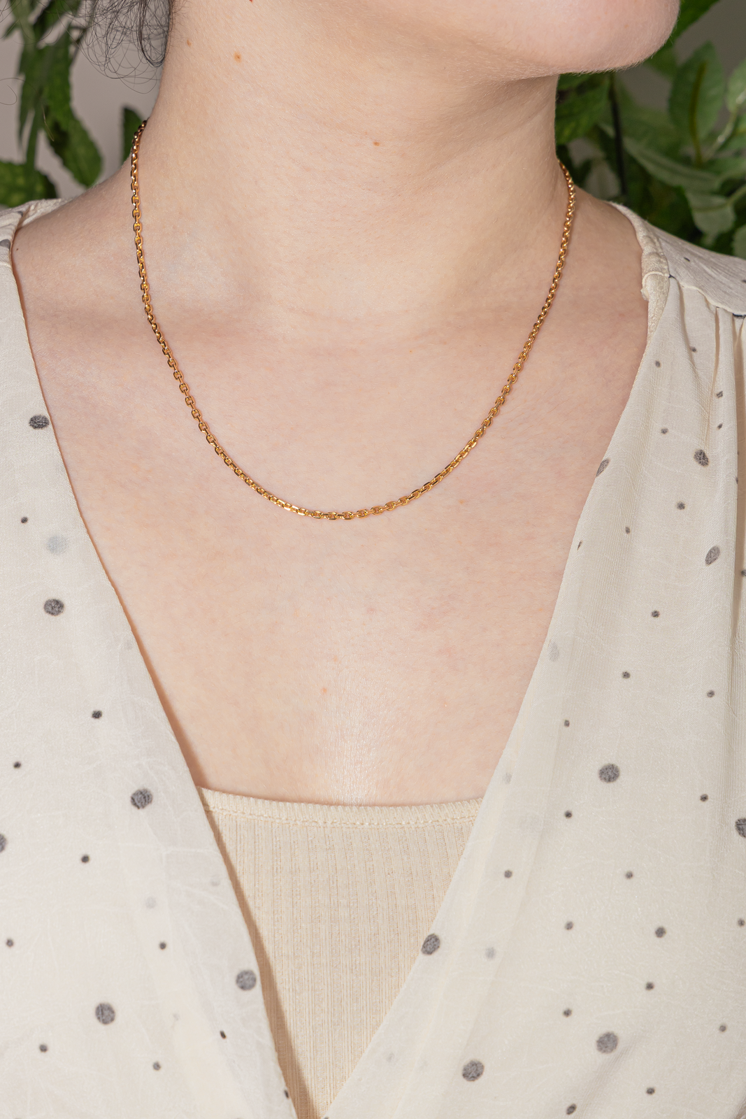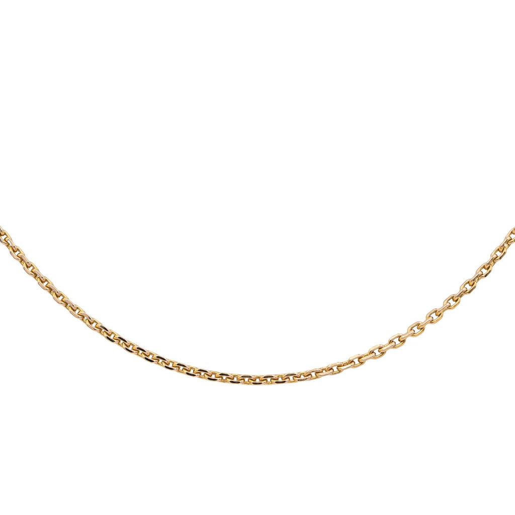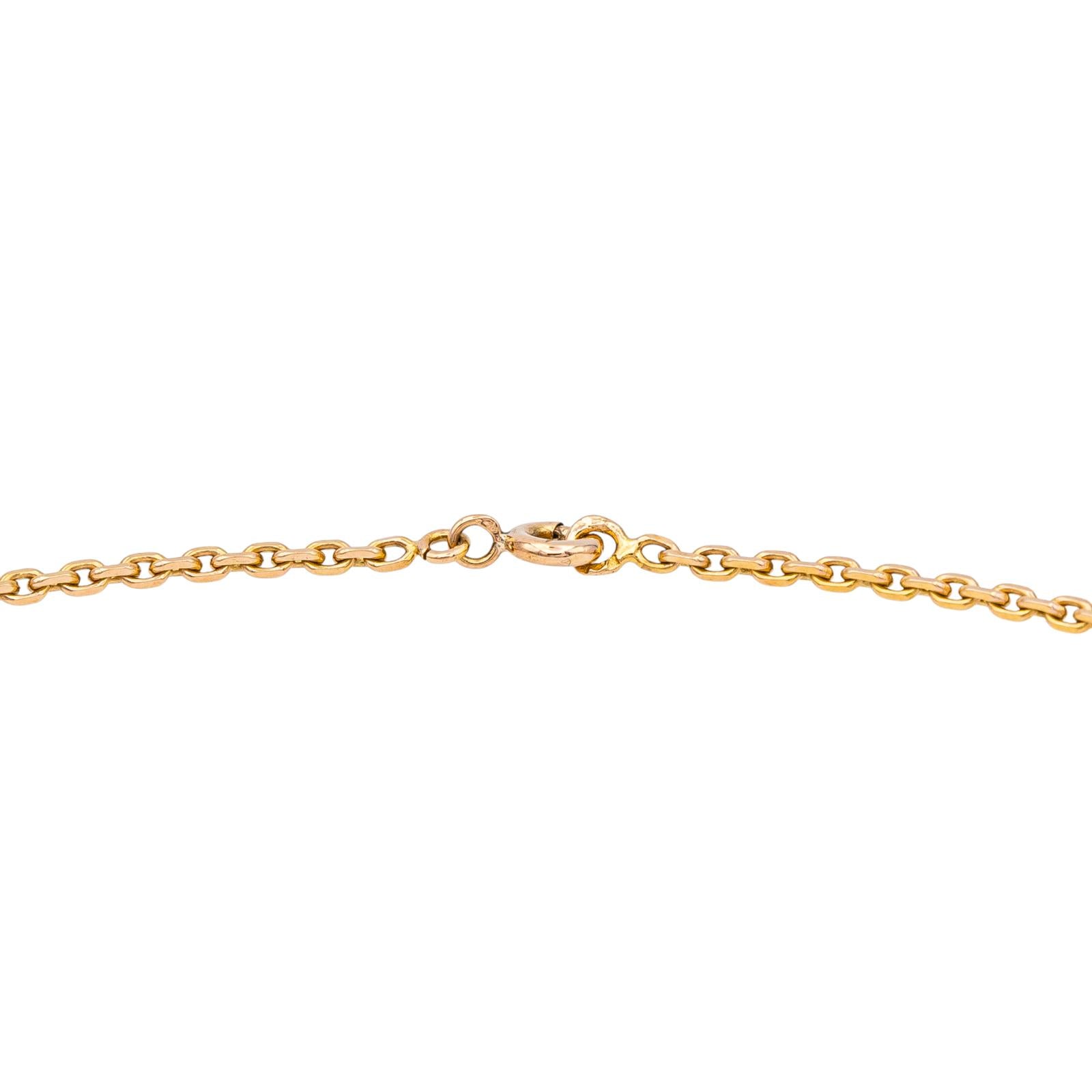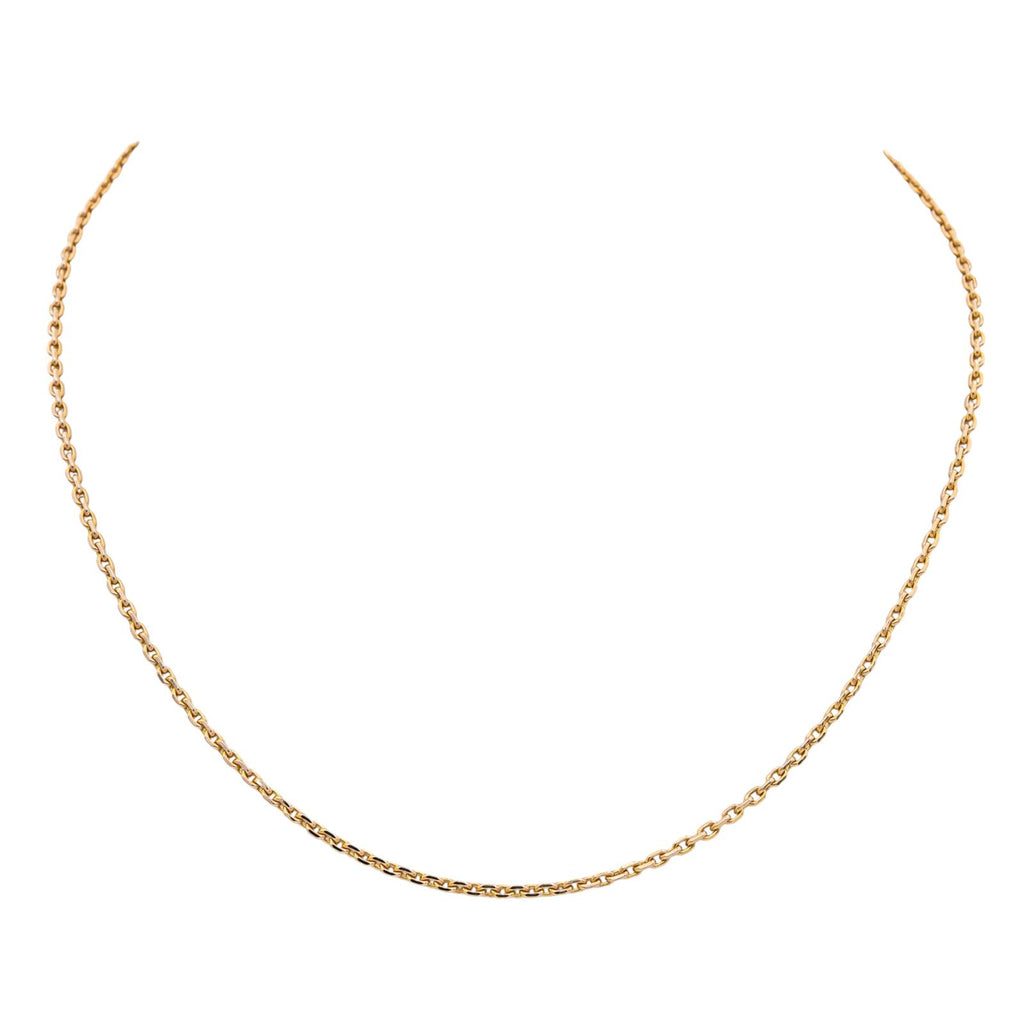 Chaîne en or rose 750 millièmes (18 carats), maille forçat, longueur : 44,5 cm, largeur : 0,15 cm, poids total : 9,10 g, poinçon tête d’aigle, taille 52, excellent état