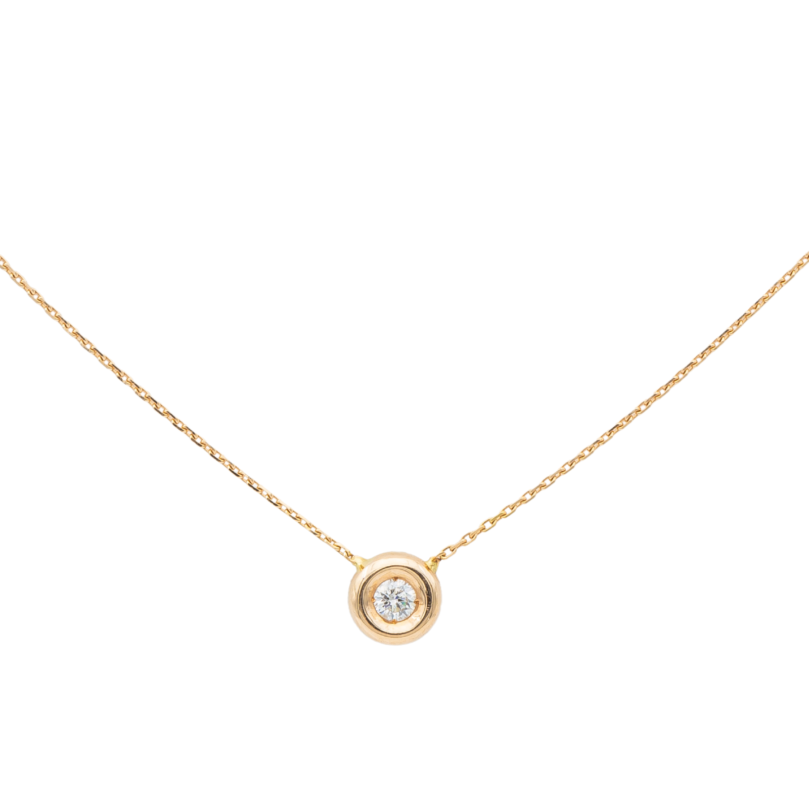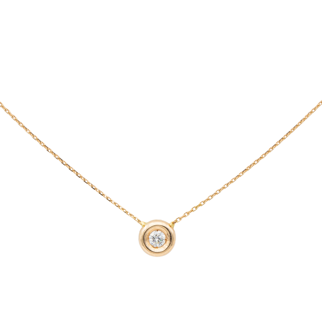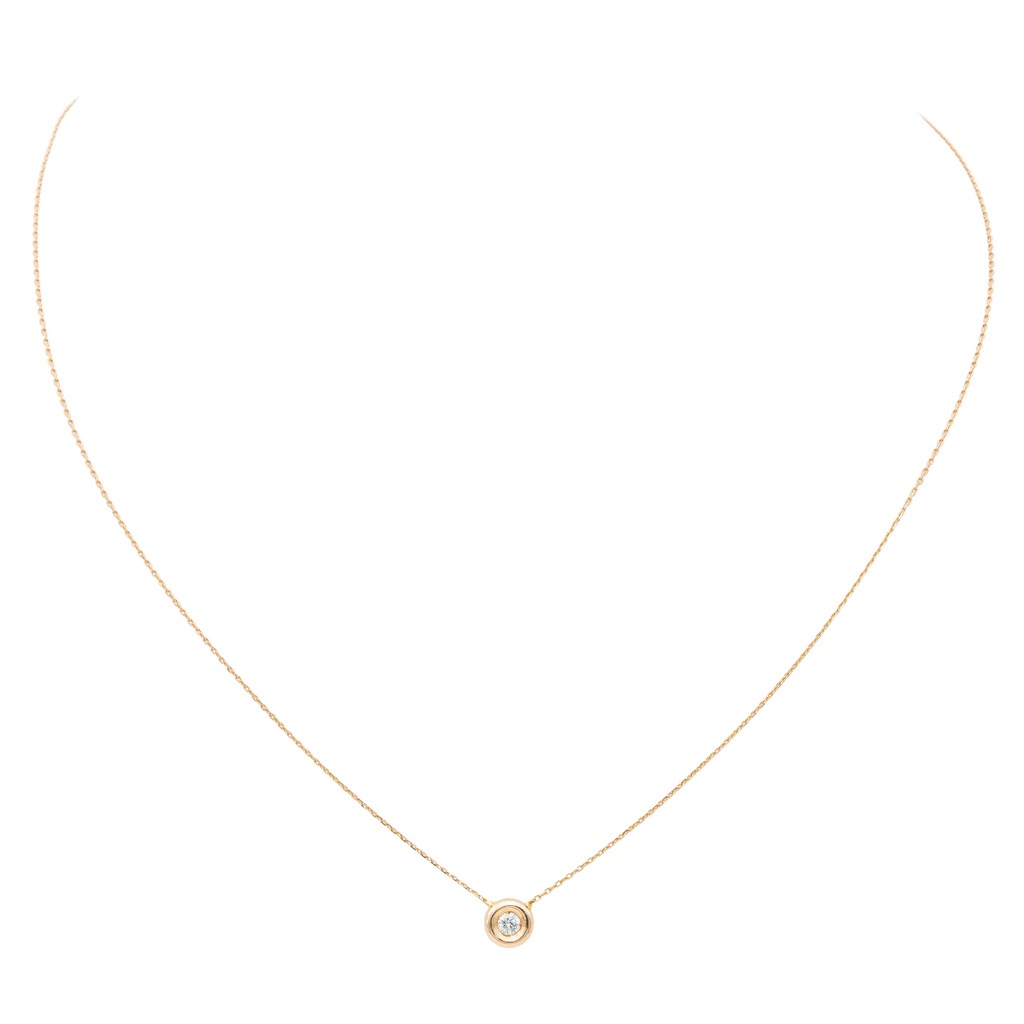 Collier en or rose 750 millièmes (18 carats), fine chaîne en maille forçat sur laquelle est posé un diamant taille brillant G-H V-SI de 0,08 ct en serti clos, Longueur: 42 cm, diamètre du motif: 0,6 cm, largeur de la chaîne: 0,7 mm, poids total: 1,52 g, poinçon tête d'aigle, état neuf