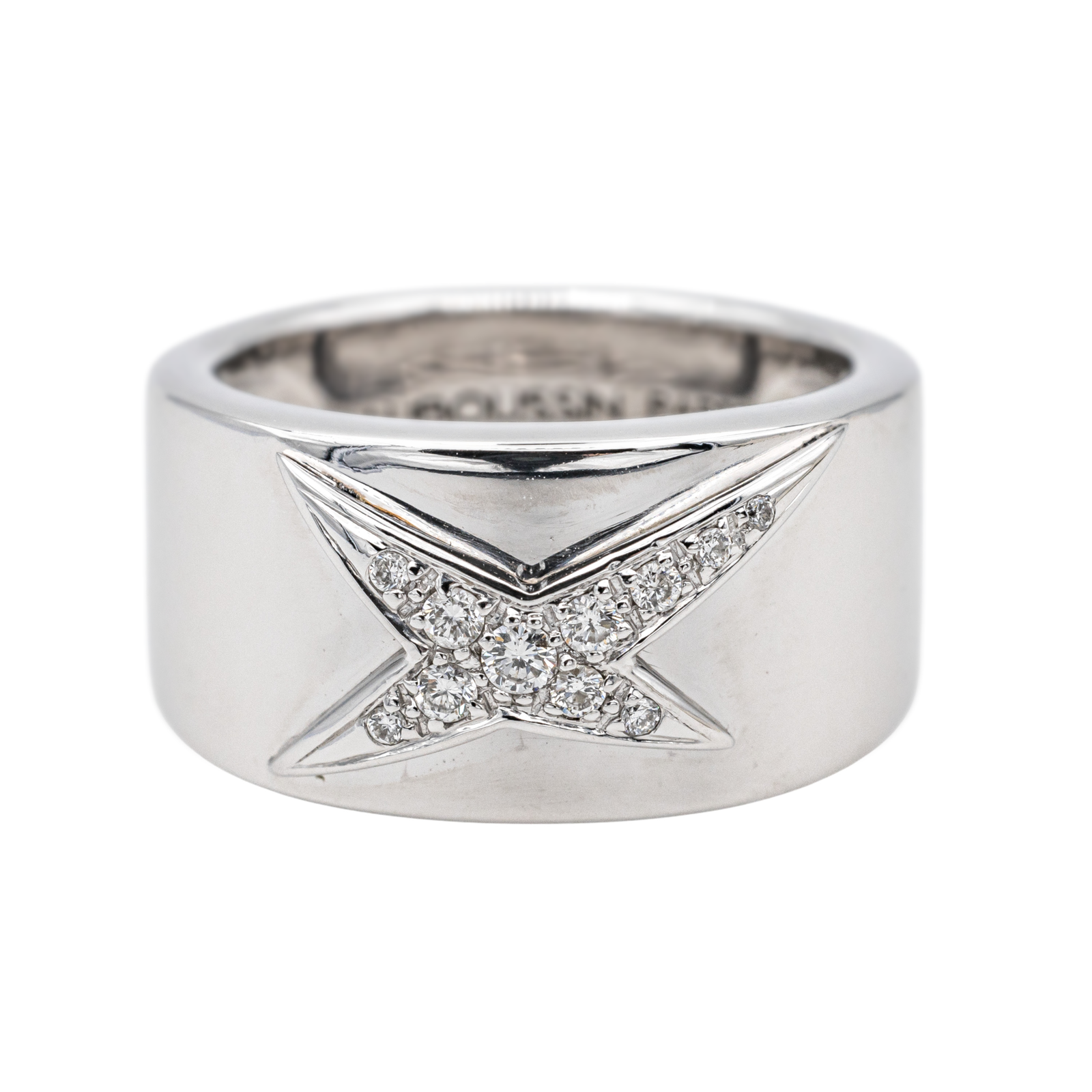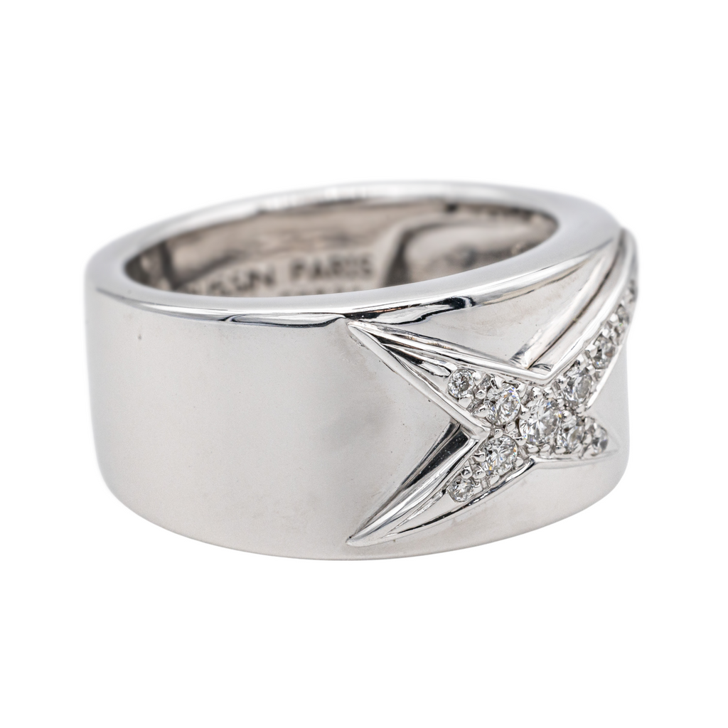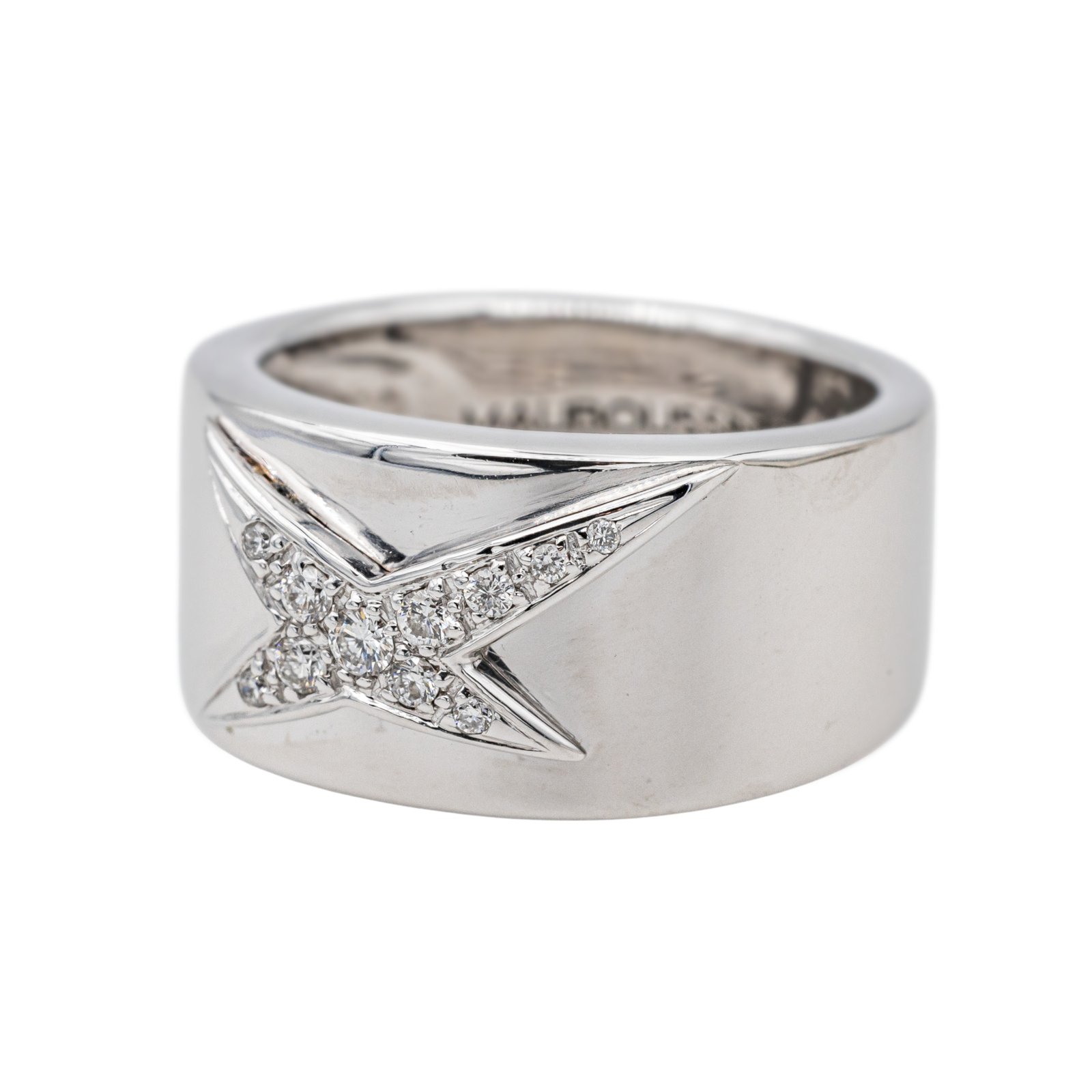 Bague signée de la Maison Mauboussin en or jaune 750 millièmes (18 carats), modèle Etoile Divine, sertie de diamants, 11 diamants taille brillant, environ H-SI, d'un poids total d'environ 0,13 ct, (le diamant central d'environ 0,02 ct, 4 diamants d'environ 0,04 ct et 6 diamants d'environ 0,03 ct), largeur sur le dessus: 1,02 cm, tour de doigt: 51, poids total: 10,04 g, numérotée F4371, poinçon hibou, excellent état