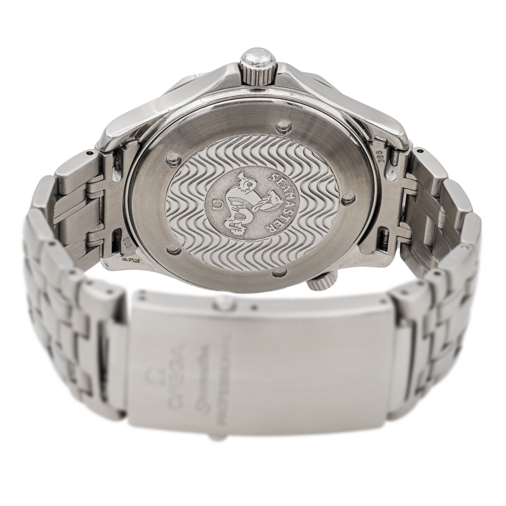Montre Omega modèle Seamaster Diver acier, n°série 78508925 , cadran bleu à index, mouvement à quartz, boîtier 41 mm, verre saphir, bracelet acier boucle déployante avec rallonge plongeur (taille poignet 18,50 cm, largeur bracelet 20 cm), poids total : 141,44 g, papiers d'origine et boite SAV, années 2000, révision complète, excellent état