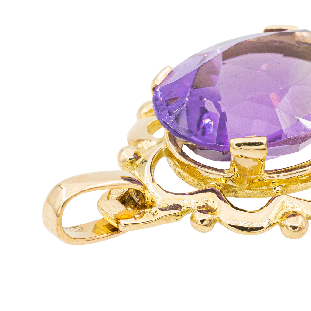 Pendentif en or jaune 750 millièmes (18 carats), améthyste ovale d'environ 5,15 ct (dimensions: 14,40 mm x 10,20 mm), dimensions pendentif: 2,40 cm x 1,60 cm (bélière incluse), Poids total: 3,15 g, Poinçon tête d'aigle, excellent état