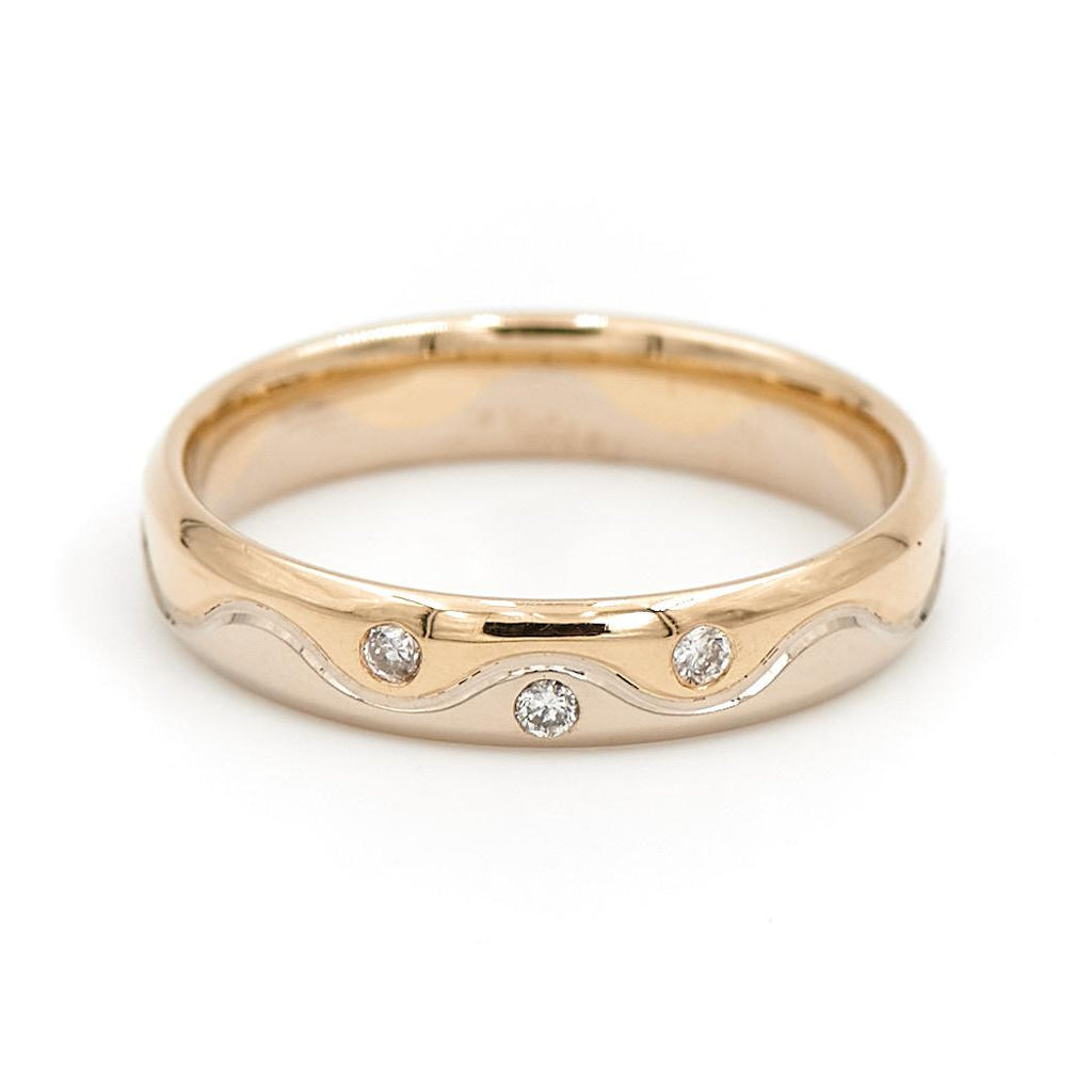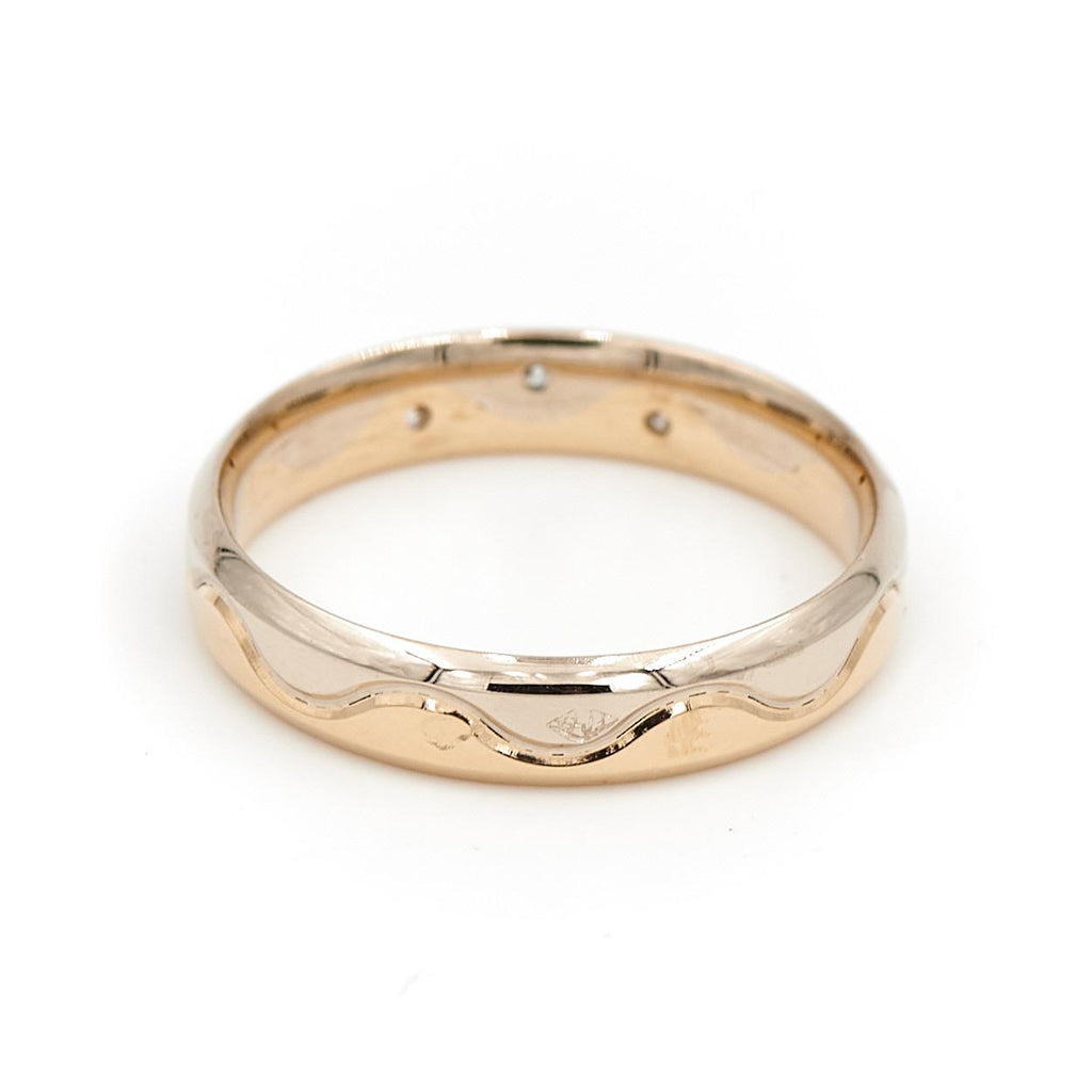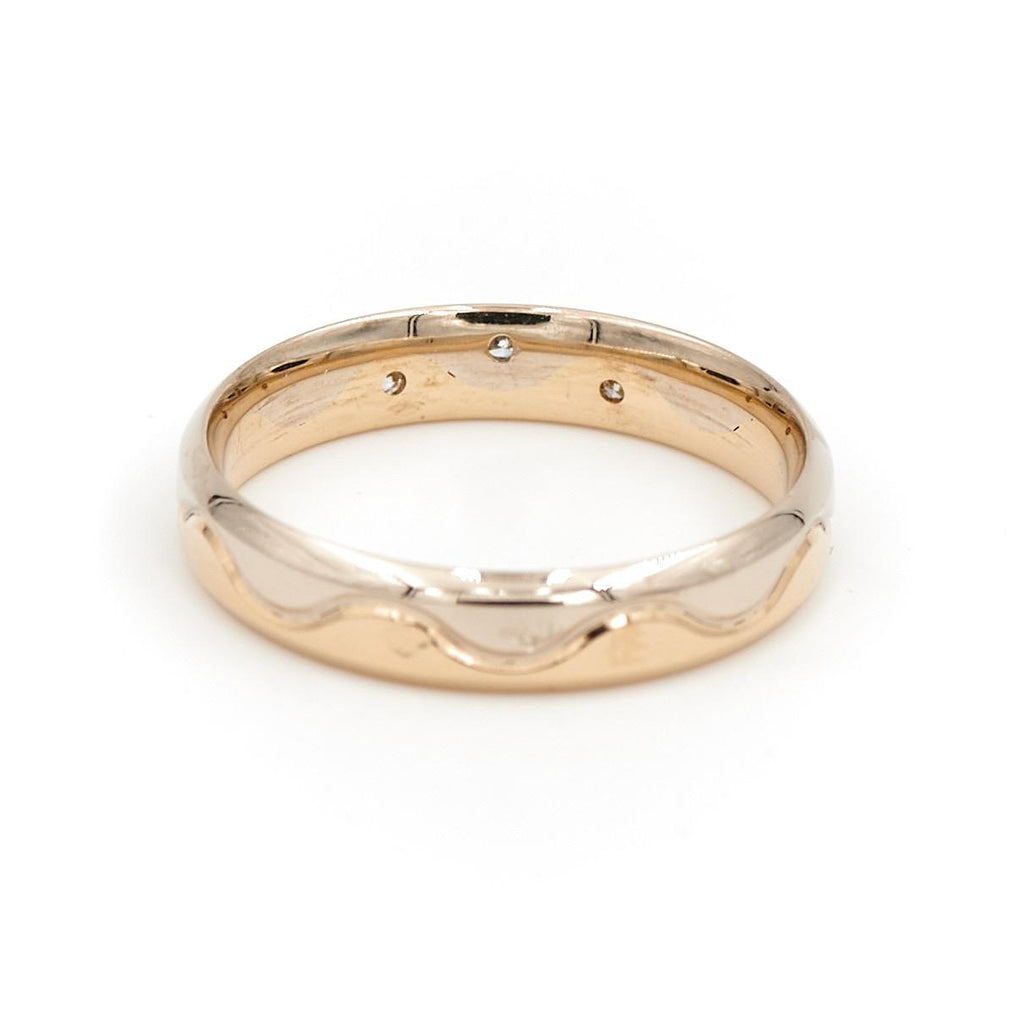 Alliance en or jaune et blanc 750 millièmes (18 carats), sertie de 3 diamants de taille brillant, d'environ 0,01 ct chacun, estimé H/VS, Poids total des diamants: 0,03 ct, Tour de doigt: 54, Largeur sur le dessus: 0,40 cm, Poids total: 3,66 g, Poinçon tête d'aigle, Excellent état
