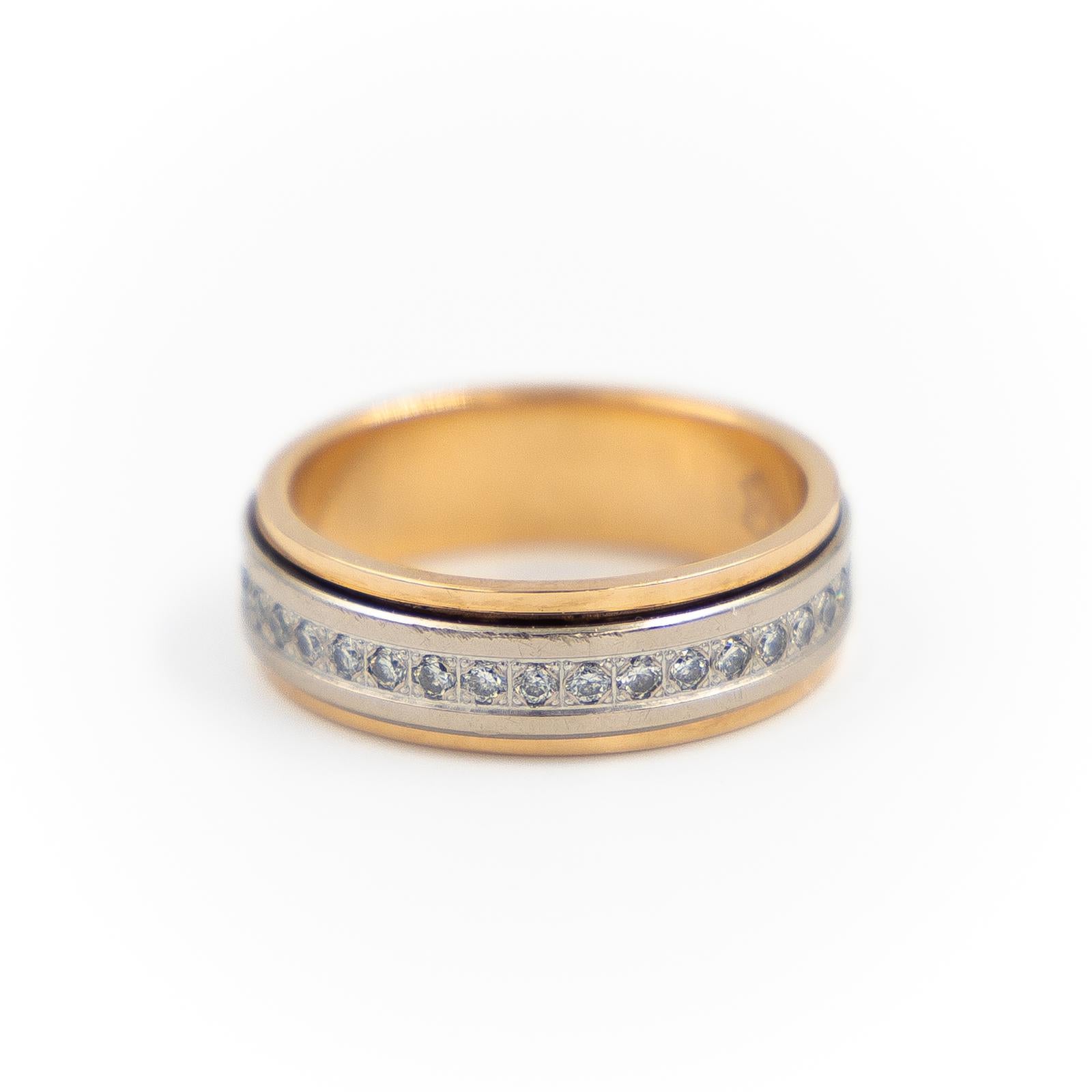 Alliance en or blanc et or rose 750 millièmes (18 carats), sertie de 40 diamants taille brillant estimés H/VS, environ 0,01 ct chacun, Poids total des diamants: 0,40 ct, Tour de doigt: 53, Largeur sur le dessus: 0,60 cm, Poids total: 6,08 g, Poinçon tête d'aigle, Excellent état