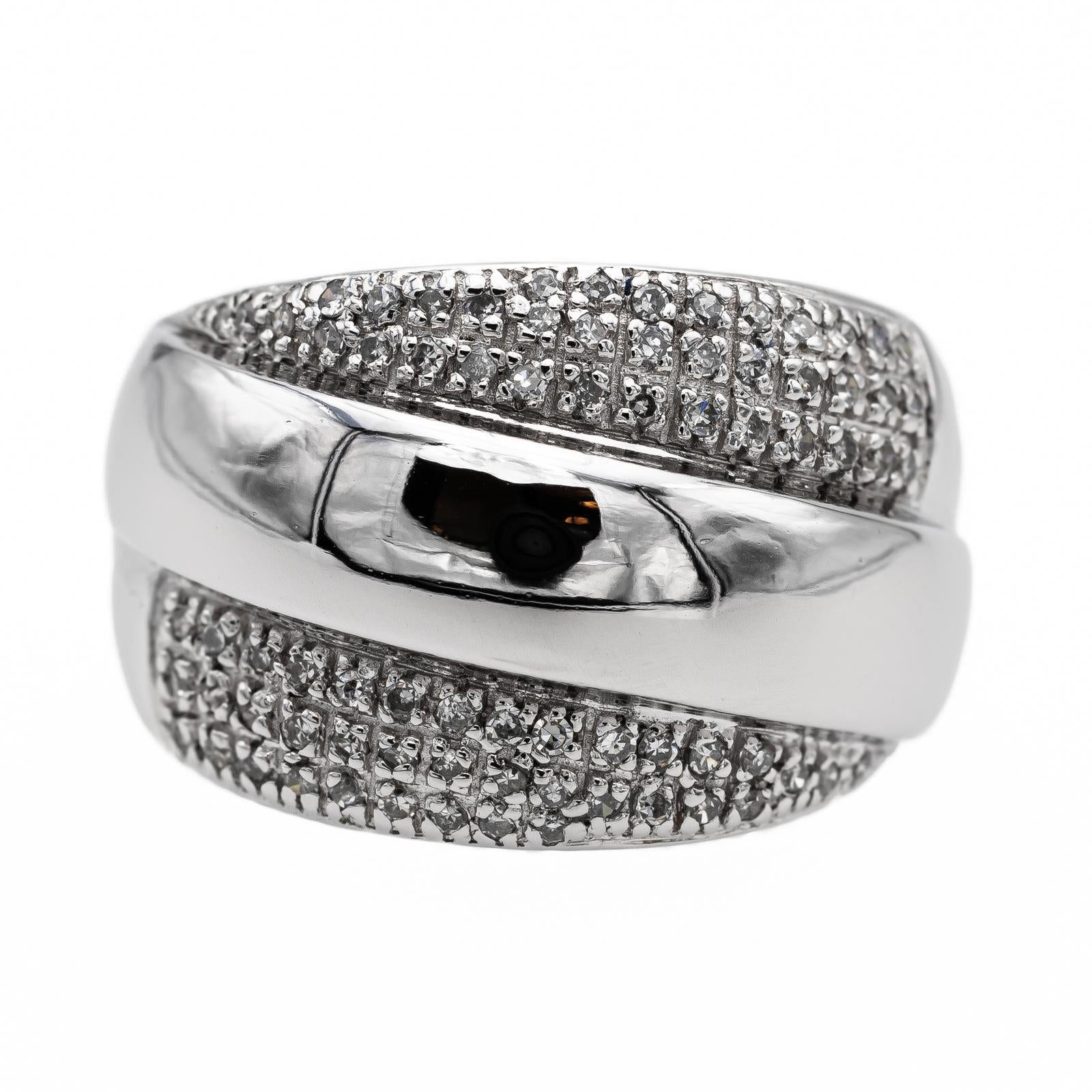 Bague bandeau en or blanc 750 millièmes (18 carats), sertie de 76 diamants taille huit/huit, estimés H/SI, d'environ 0,005 ct chacun, poids total diamants: environ 0,38 ct, largeur sur le dessus: 1,52 cm, tour de doigt: 56, poids total: 9,31 g, poinçon hibou, excellent état
