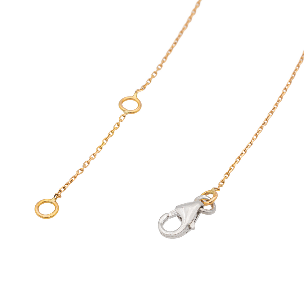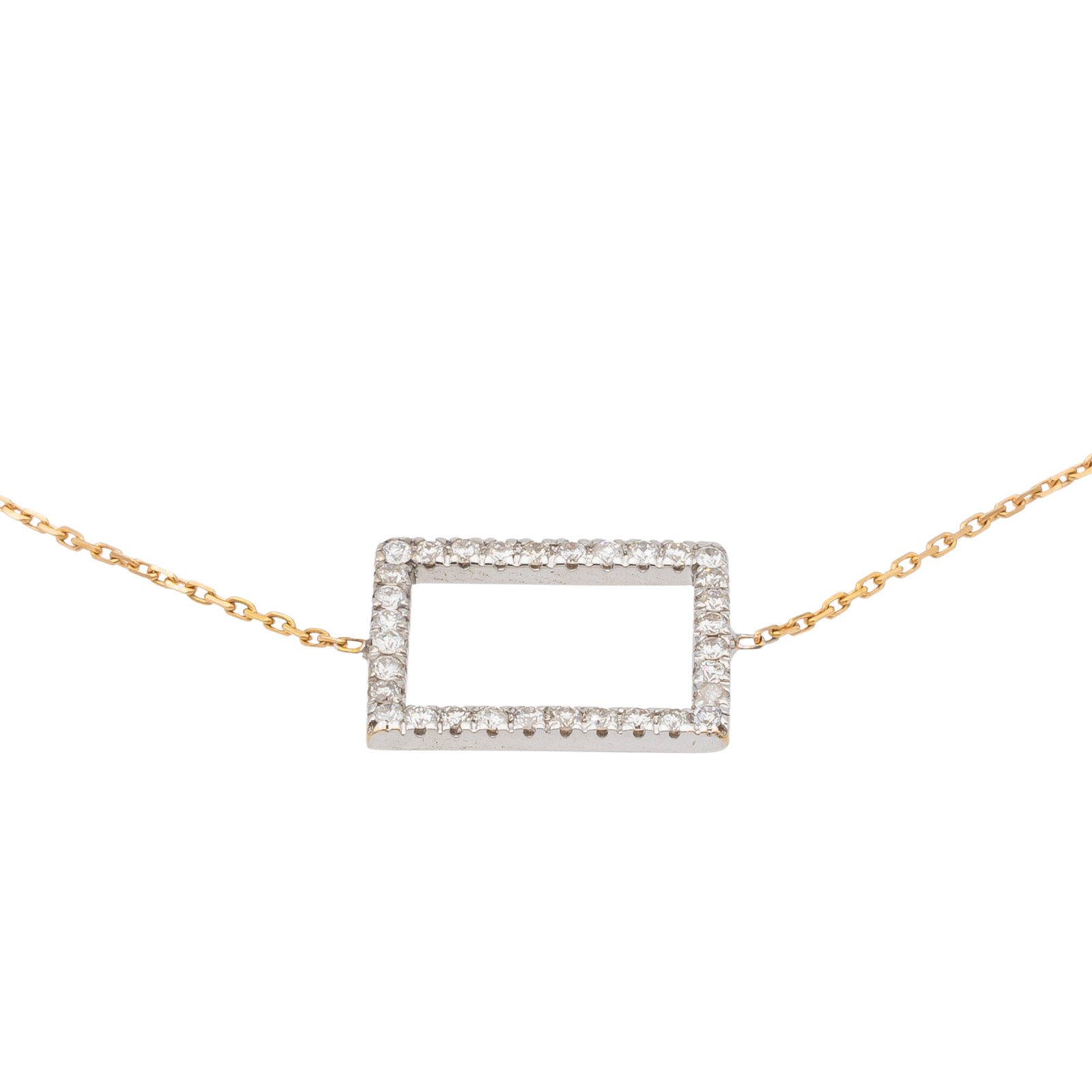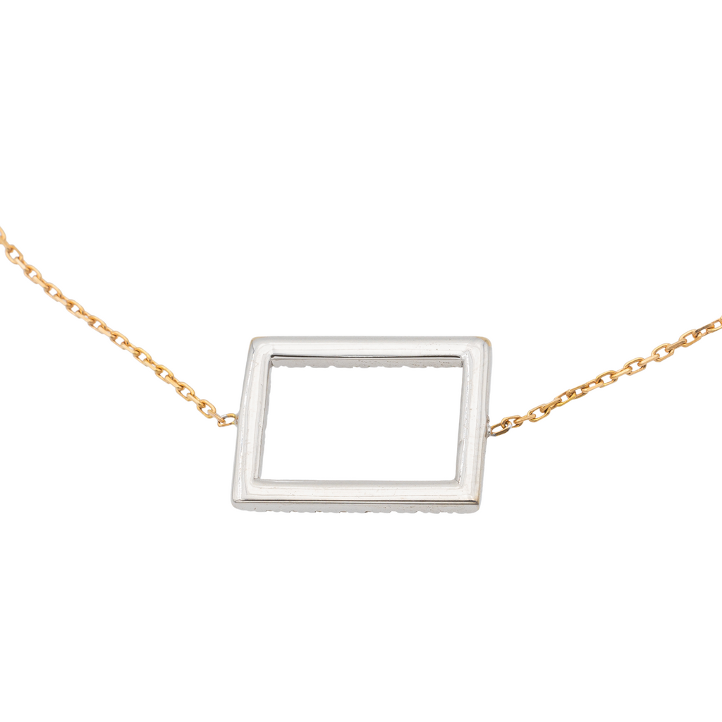 Bracelet in 750 thousandths (18 carat) white and pink gold, rectangle motif in 750 thousandth (18 carat) white gold set with 32 brilliant-cut diamonds GH V-SI, with a total weight of 0.19 ct, forçat link chain, white gold clasp, length: 18.5 cm with intermediate ring at 16 cm, width of the chain: 0.7 mm, dimension of the motif: 1.26 cm x 0.97 cm, total weight: 1.52 g, eagle's head hallmark, mint condition.