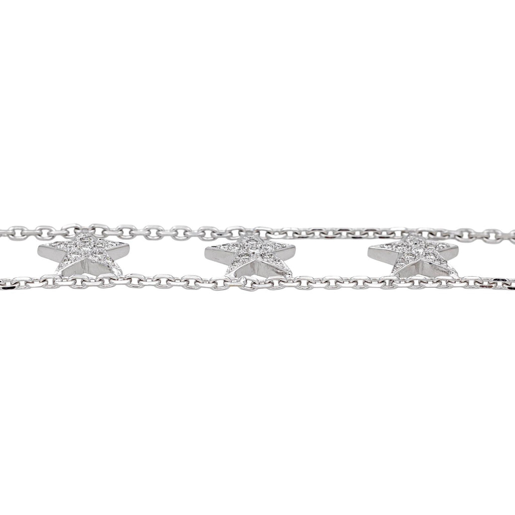 Bracelet en or blanc 750 millièmes (18 carats), serti de 55 diamants taille brillant, environ G-VS, d'un poids total d'environ 1,10 ct, (chaque diamant d'un poids d'environ 0,02 ct), maille forçat, longueur : 15,5 cm, largeur : 1,32 cm, épaisseur : 0,23 cm, fermoir mousqueton, poids total : 15,5g, poinçon hibou, excellent état