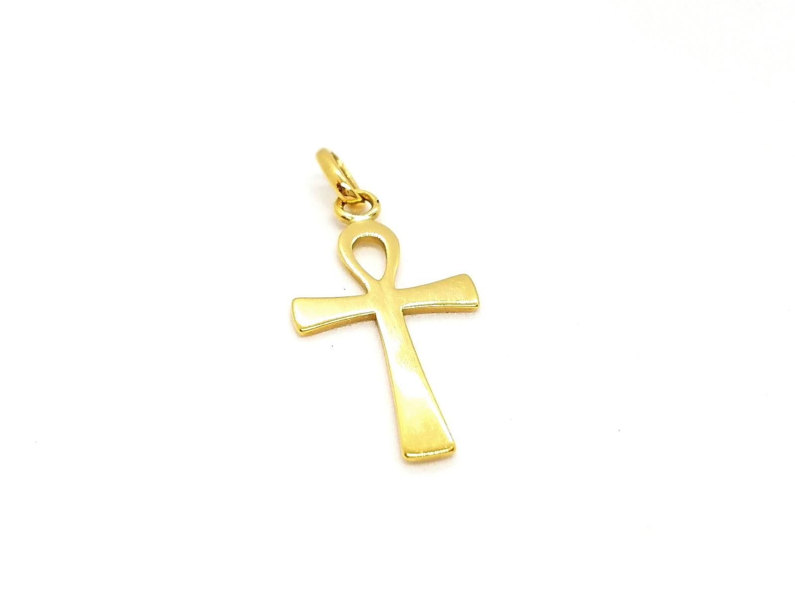 Cross pendant, in 750 thousandths (18 carat) yellow gold tested, Egyptian cross, dimensions: 2.92 cm x 1.29 cm (bail included), total weight: 1.08 g, new condition, Internet exclusive