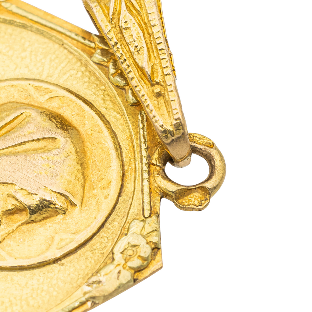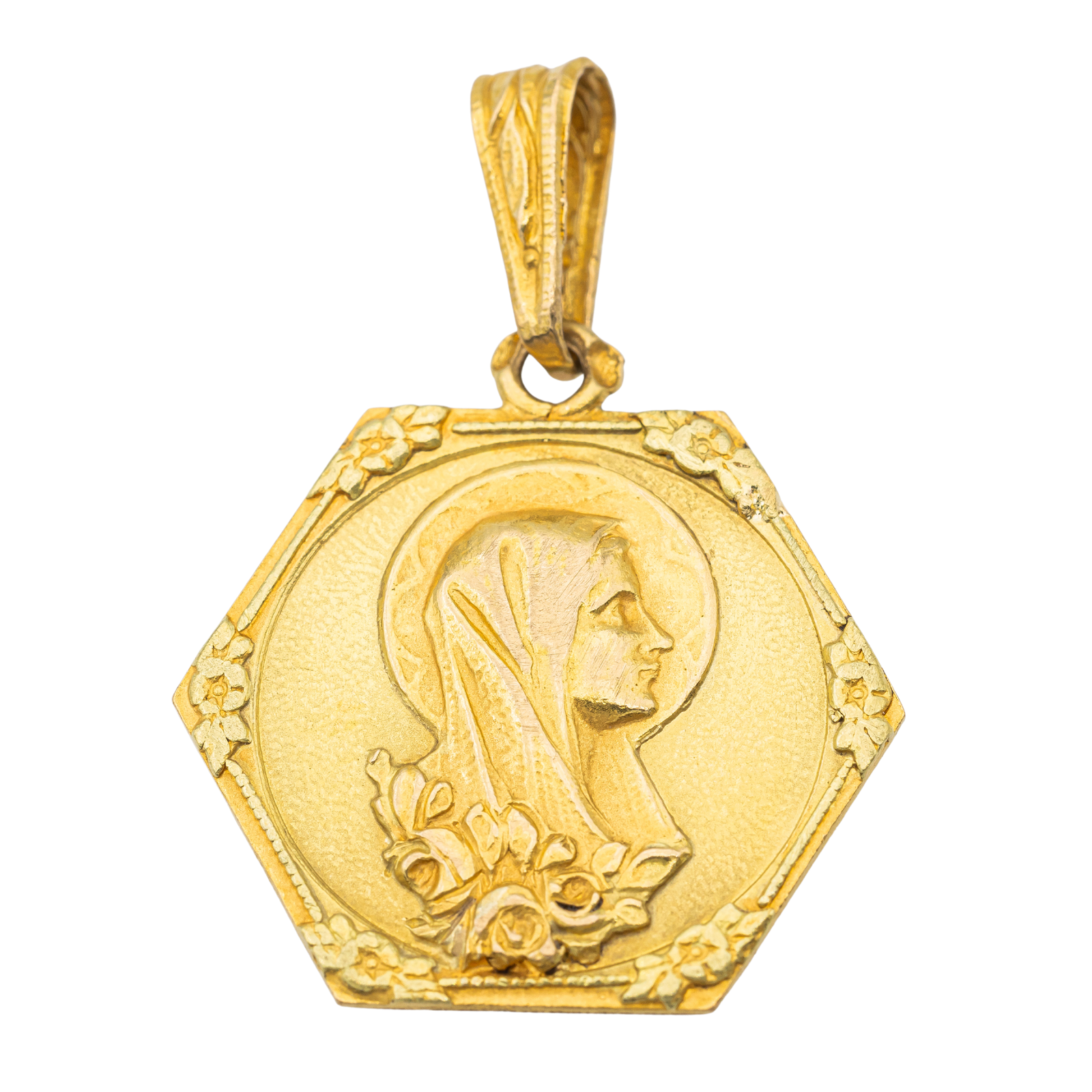 Pendentif en or jaune 750 millièmes (18 carats), figurant la vierge Marie, longueur avec la bélière: 2,60 cm, Largeur : 1,82 cm, poids total: 1,76 g, poinçon tête d'aigle, Excellent état