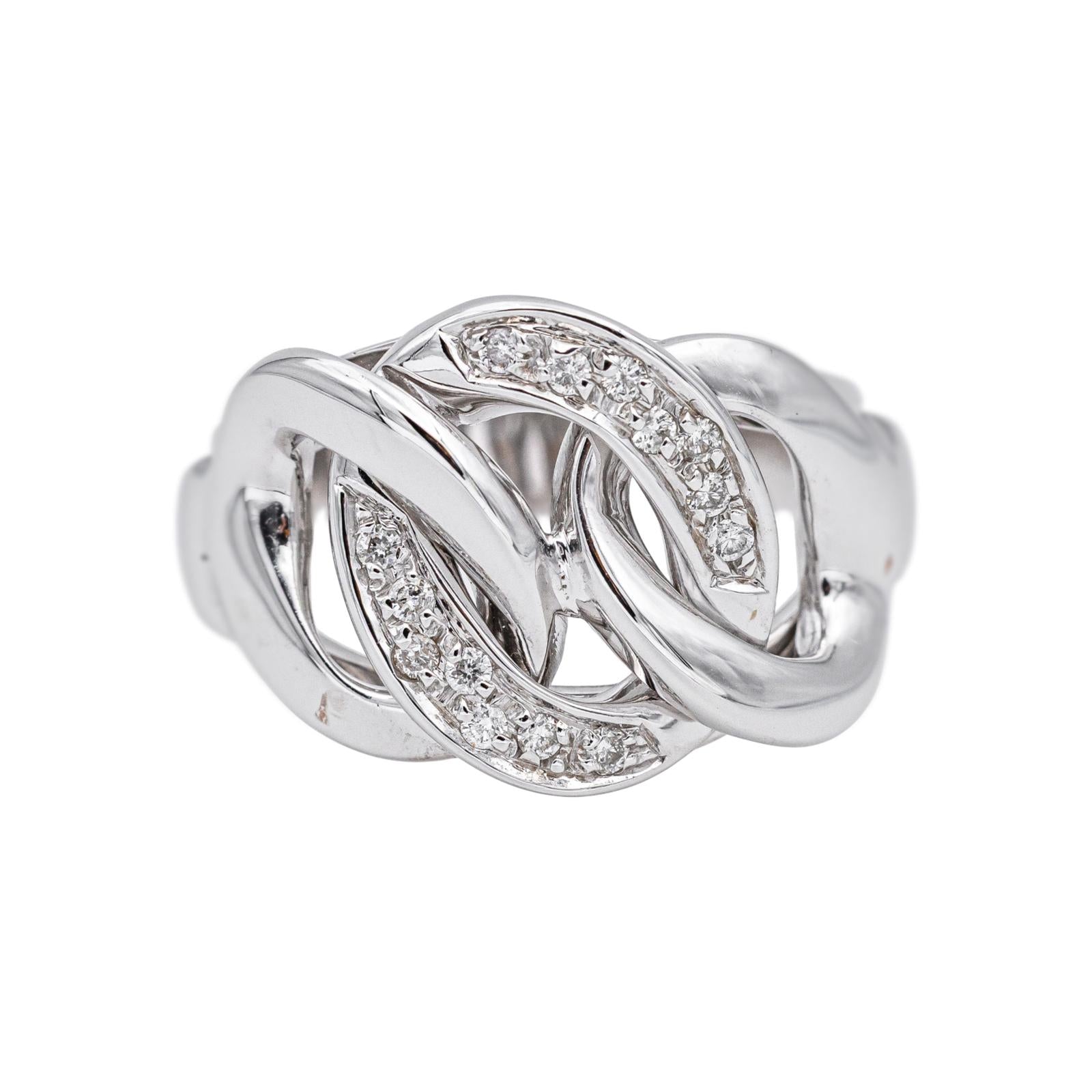 Bague en or blanc 750 millièmes (18 carats), sertie de 14 diamants, taille brillant, environ G-VS, d'un poids total d'environ 0,11 ct, (chaque diamant d'un poids d'environ 0,008 ct), largeur sur le dessus : 1,40 cm, tour de doigt : 53, poids total : 7,45 g, poinçon tête d'aigle, excellent état