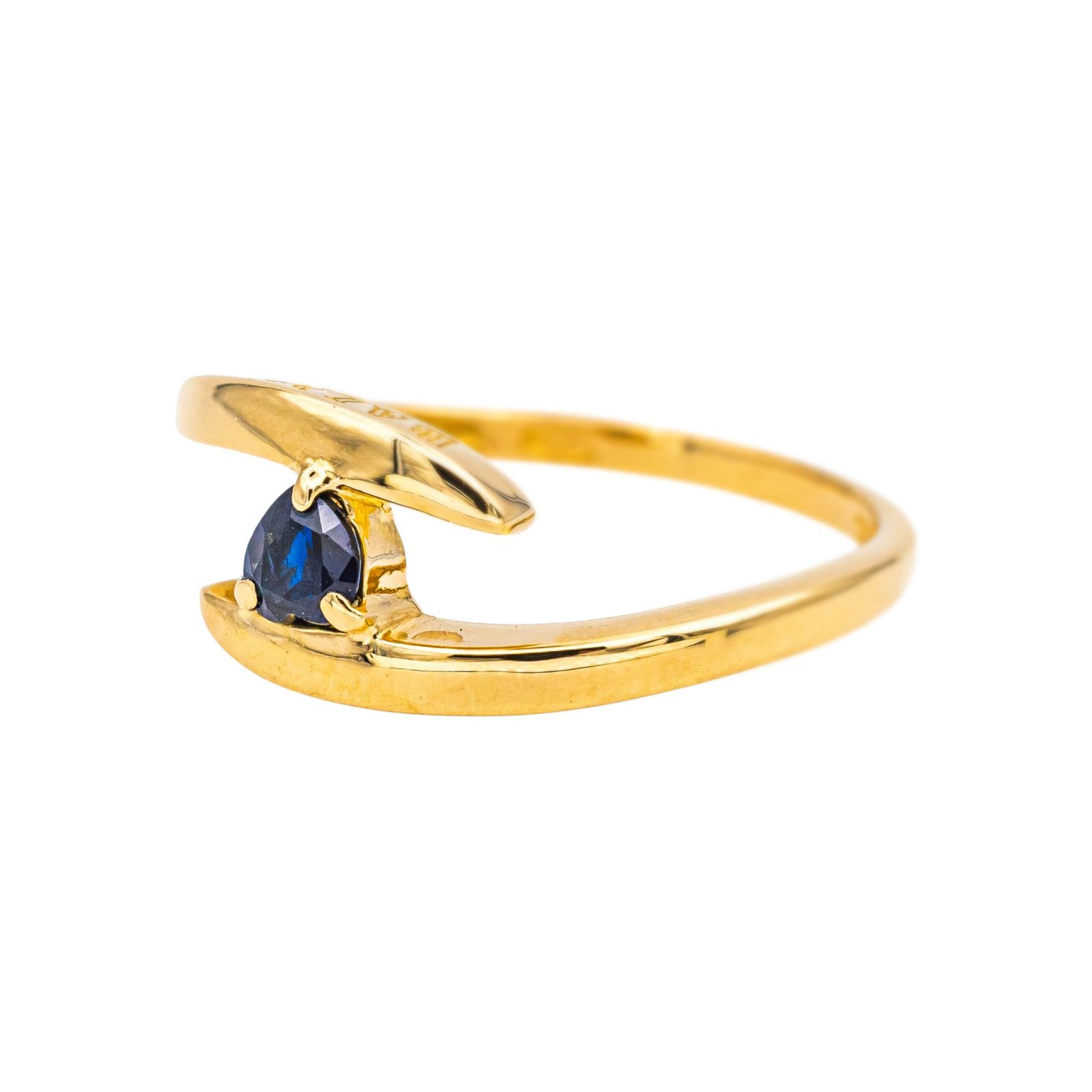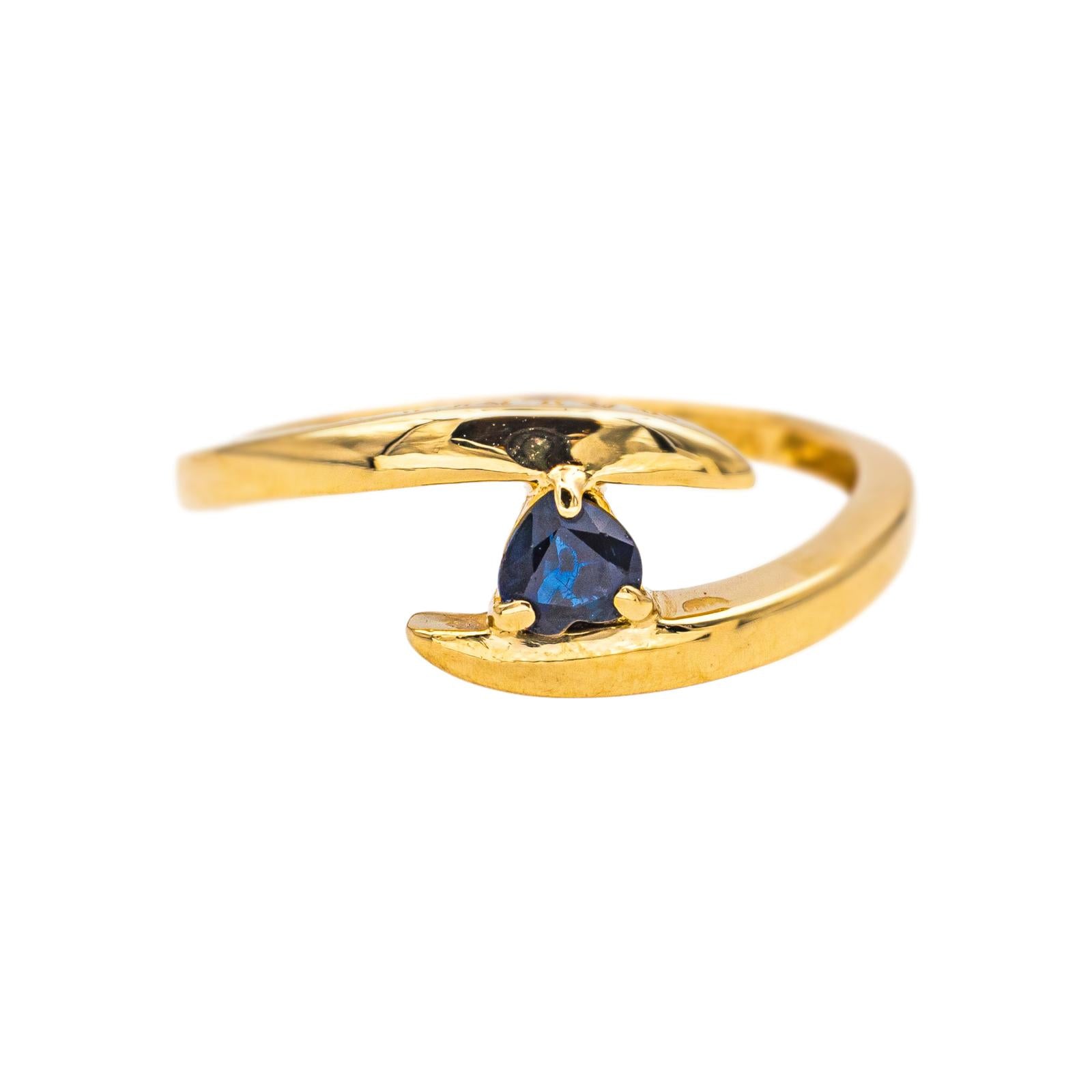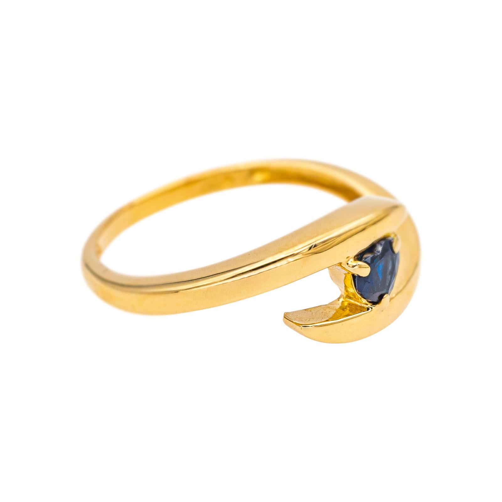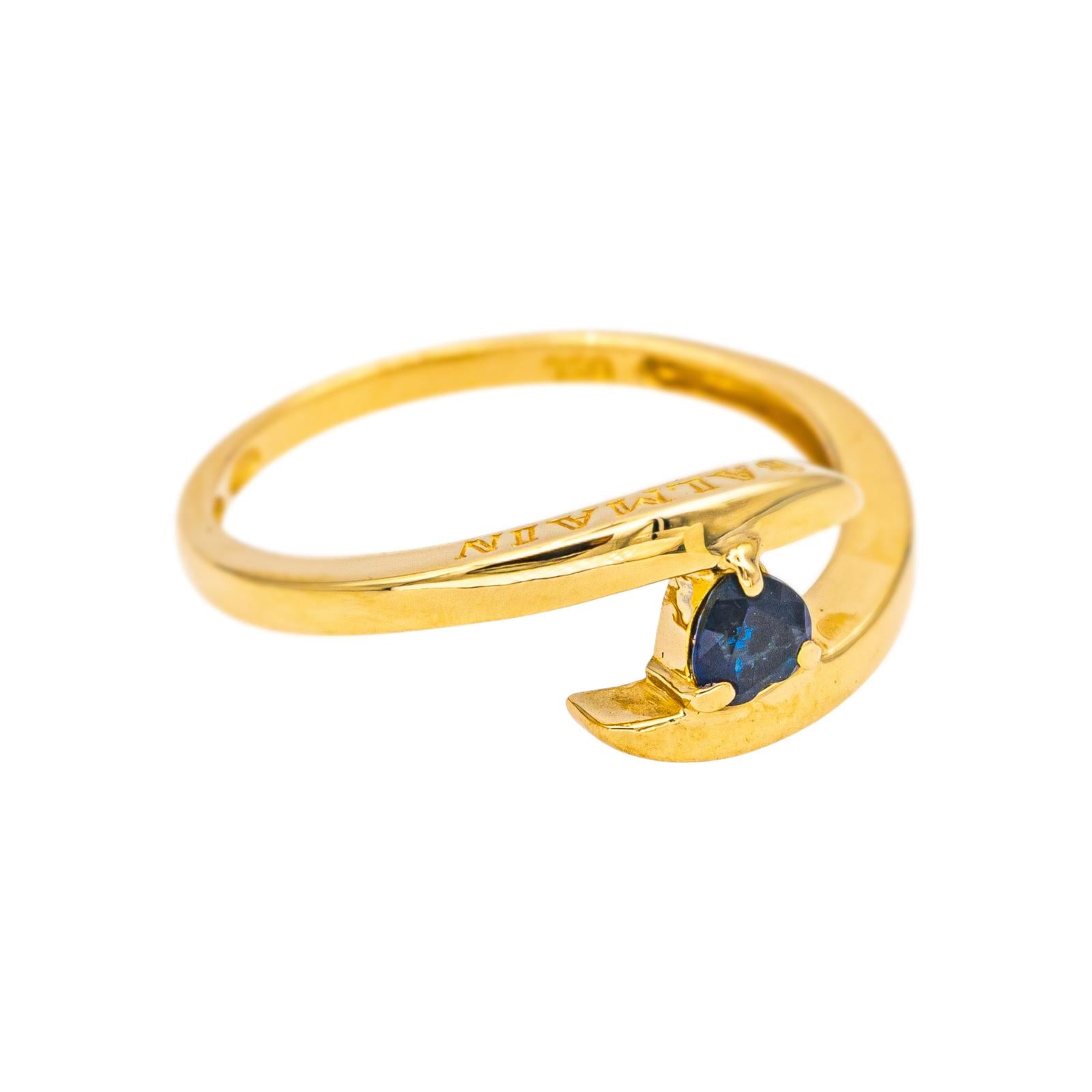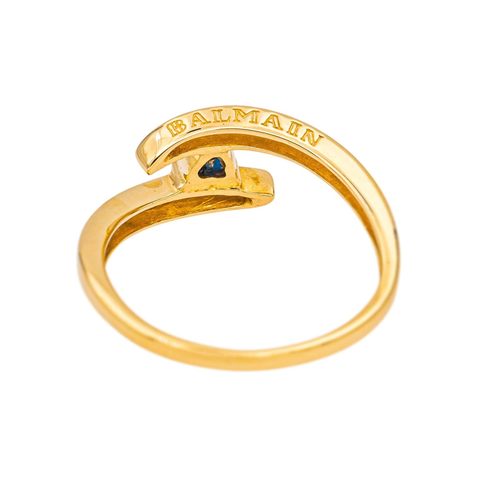 Bague signée de la Maison Balmain en or jaune 750 millièmes (18 carats) testé, sertie d'un saphir, taille cœur, d'un poids d'environ 0,22 ct, largeur sur le dessus : 0,83 cm, tour de doigt : 56, poids total : 2,84 g, excellent état