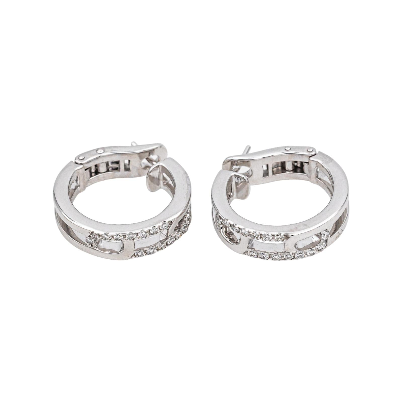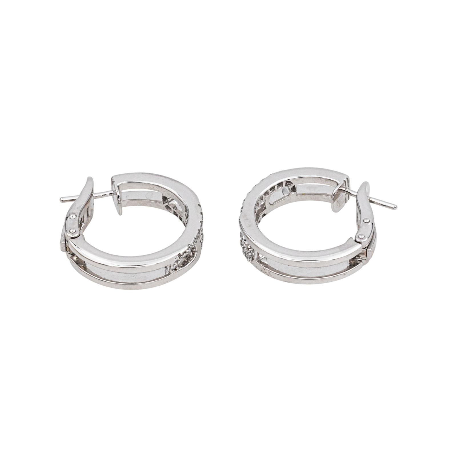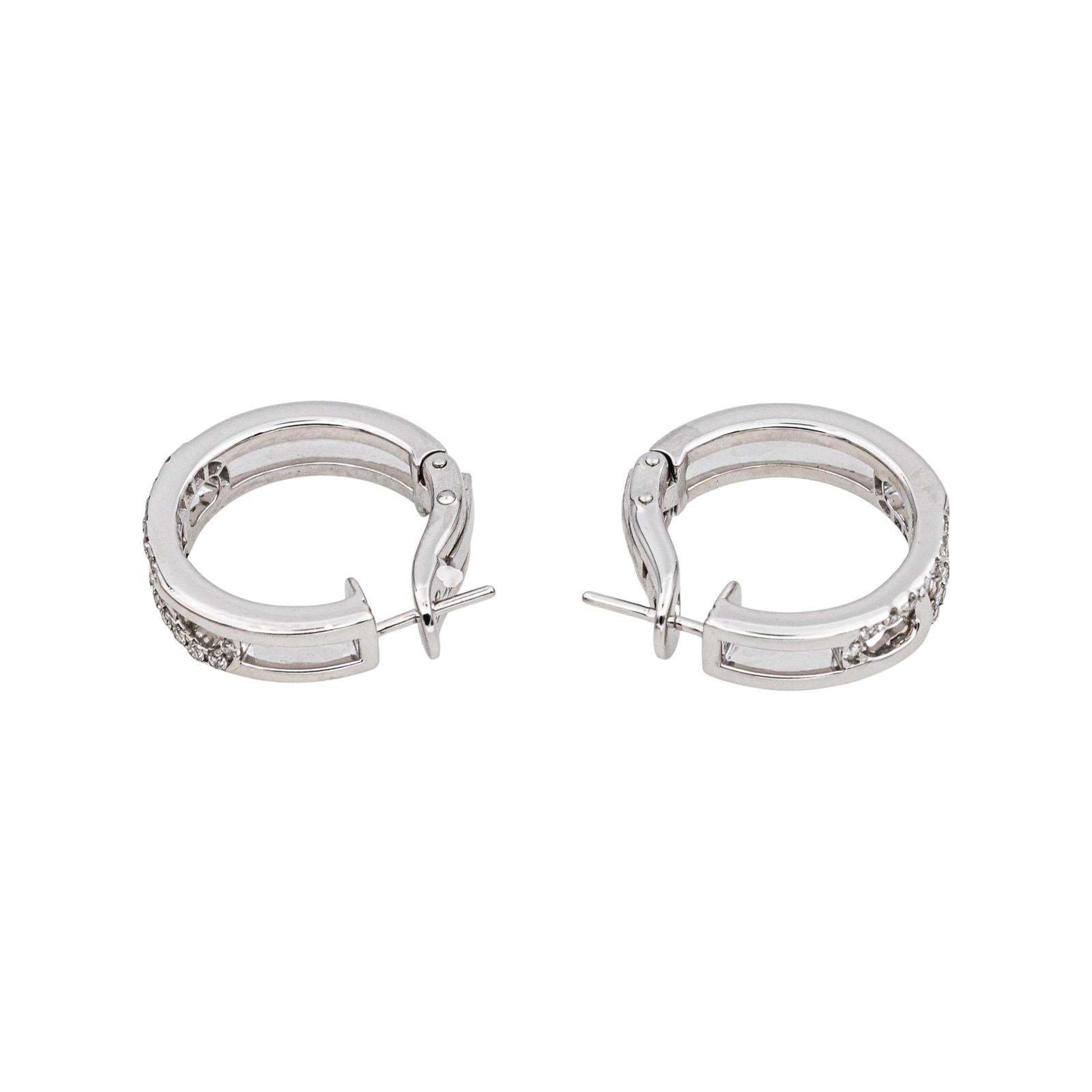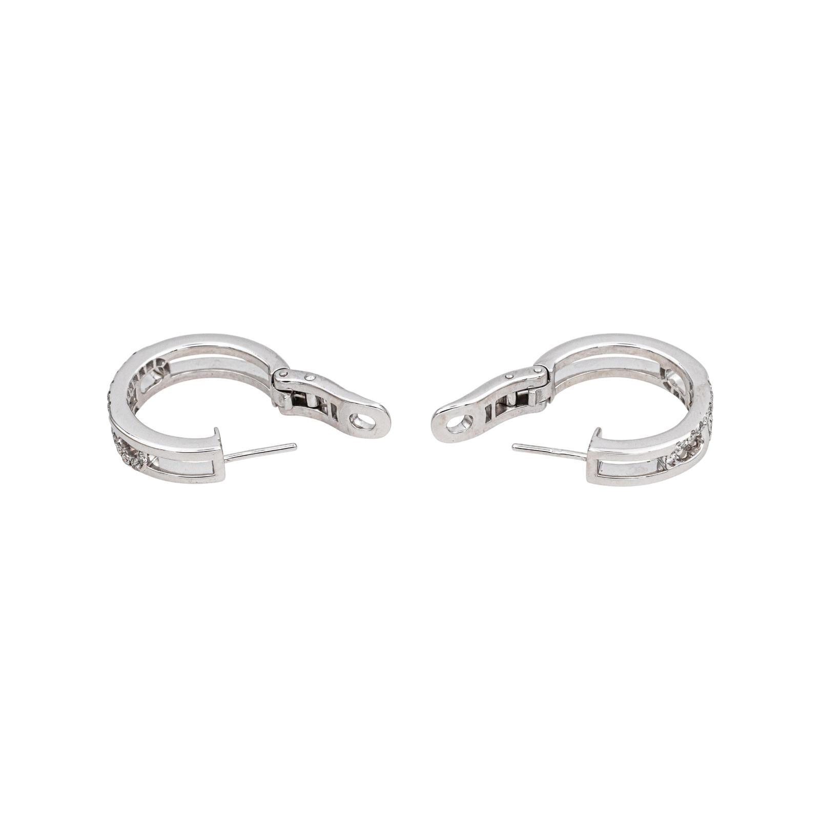 Créoles en or blanc 750 millièmes (18 carats) serties de diamants taille brillant environ G-VS, d'un poids total d'environ 0,32 ct (chaque diamant d'un poids d'environ 0,01 c t), diamètre : 2 cm, largeur : 0,50 cm, poids total : 12,21 g, poinçon tête d’aigle, excellent état